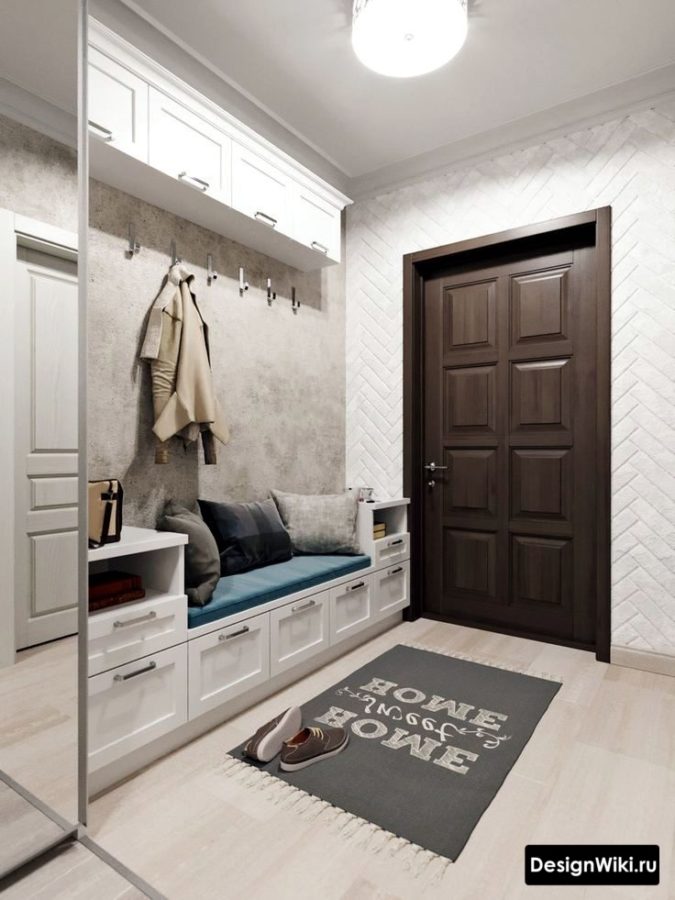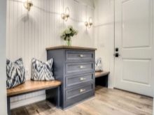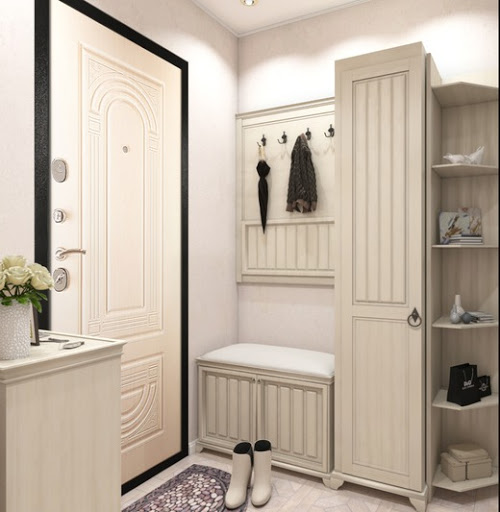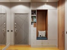 المدخل ليس المكان الذي تحتاج فيه إلى الكثير من الأثاث.... هنا ، يجب الاستغناء عن أهم الأشياء.في أغلب الأحيان ، إذا كان هناك مساحة ، توجد خزانة ملابس هنا ، حيث يمكنك وضع جميع الملابس والأحذية ، مما يمنح الغرفة مظهرًا جيدًا. رفوف للأشياء الصغيرة هي إضافة جيدة. إنه مريح للغاية عندما يكون هناك مقعد ناعم في الممر ، ويبدو جميلًا. يمكنك ارتداء حذائك عليه ، وفي الداخل توجد فرصة لتخزين الأشياء.