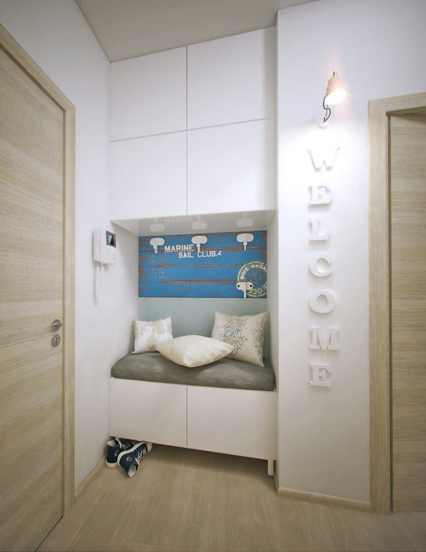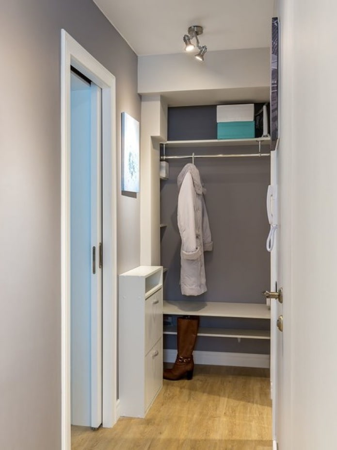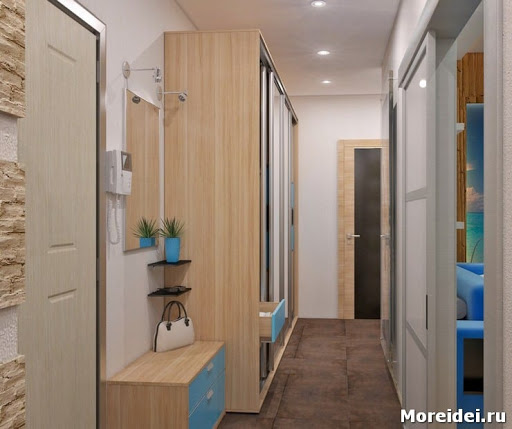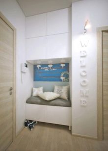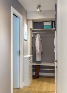 وتجدر الإشارة بشكل خاص إلى الممرات الصغيرة جدًا. في مثل هذه الحالات ، سيكون عليك أن تقتصر على علاقة ملابس مدمجة ، ورف أحذية. يمكنك استكمال المساحة بعثماني صغير.