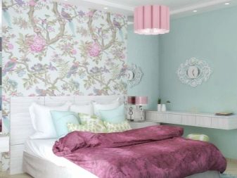 - إذا كنت تخطط لتركيب أثاث بظلال مهدئة في غرفة النوم، ثم يمكنك الانتباه إلى خلفية أو خيارات مشرقة إلى حد ما من نظام ألوان الباستيل ، ولكن بنمط مشرق.