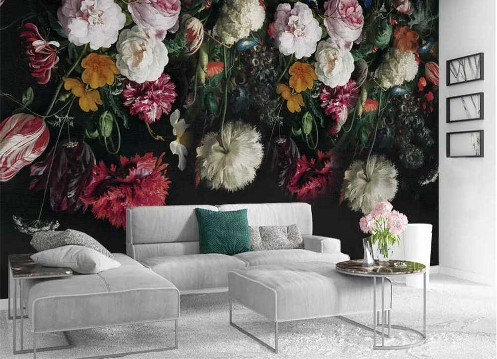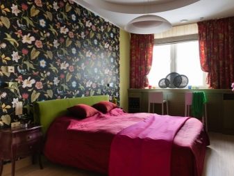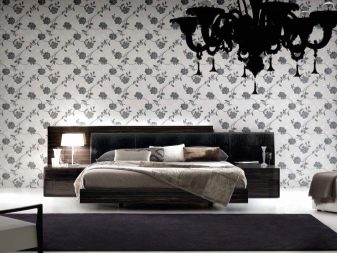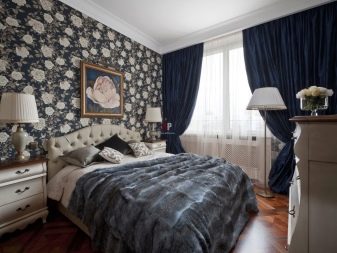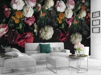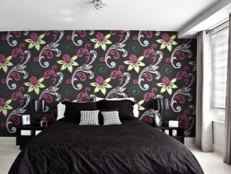 تبدو الخلفيات السوداء ذات الألوان الزاهية رائعة في الداخل ، ولكن من المنطقي شرائها للغرف الكبيرة فقط ، خاصةً إذا كانت الزهور والبراعم الكبيرة والبراعم تتباهى بها. تنطبق هذه القاعدة بشكل عام على معظم الخلفيات المظلمة. بالنسبة لغرف النوم الصغيرة ، نوصي بالاهتمام بخيارات الإضاءة بالزهور. في التصميم الداخلي الكلاسيكي ، تبدو أغطية الجدران الخفيفة المزينة بالورود والأوراق المصنوعة من الألوان المائية مفيدة بشكل خاص.
