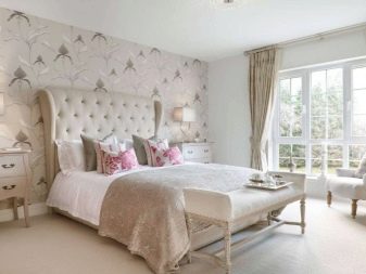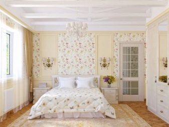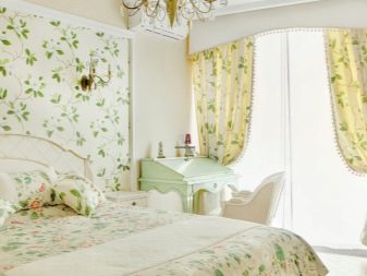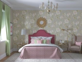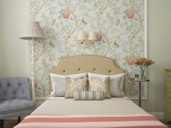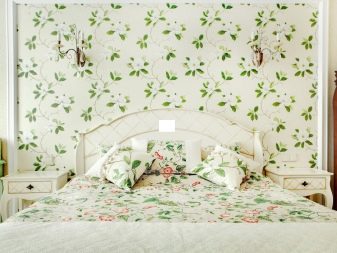 يمكن دمج ورق الحائط الذي يحتوي على زخارف نباتية تمامًا مع المطبوعات الأخرى ، مثل المشارب أو منقطة. لذلك ، لا تخف من شراء عدة أنواع من أغطية الجدران لغرفة النوم. إذا كان أحد الجدران في الغرفة مزينًا بورق حائط مزخرف بالورود ، فيمكن لصق جميع الجدران الأخرى ، على سبيل المثال ، بورق حائط مخطط. الشيء الرئيسي هو اختيار جميع الطلاءات بنفس نظام الألوان.