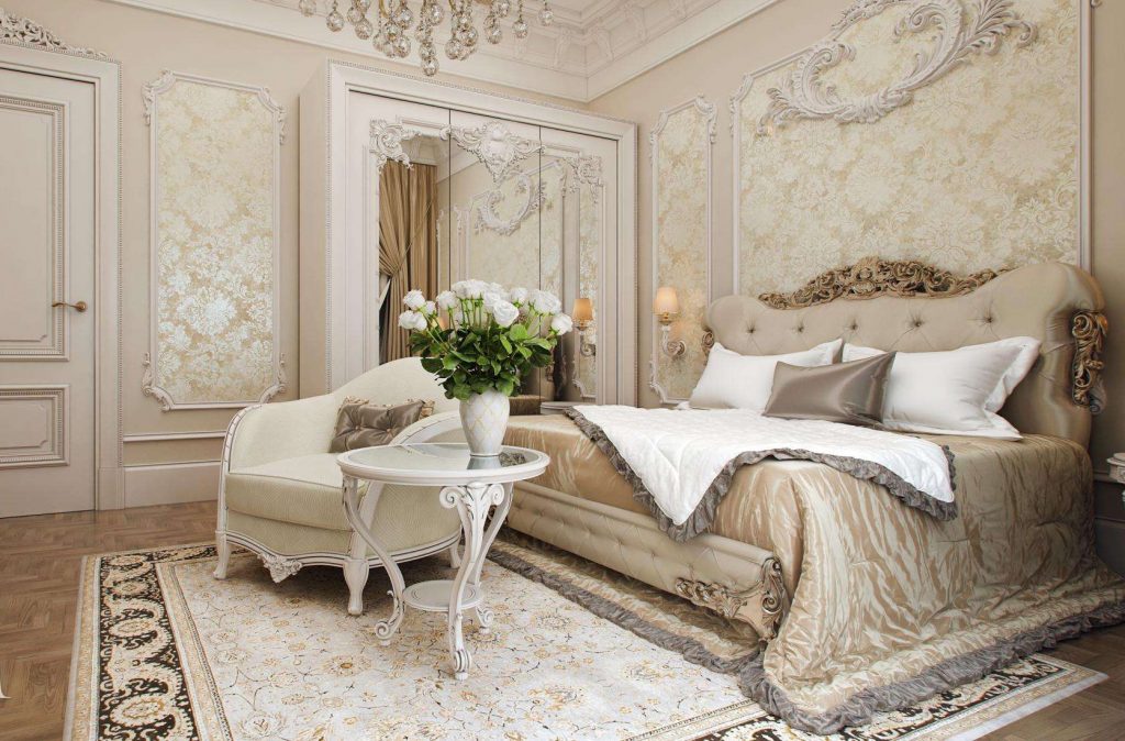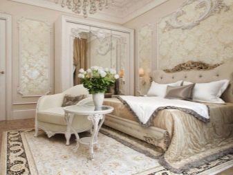 بالنسبة لأي تصميمات داخلية كلاسيكية ، يمكنك النظر بأمان في خلفيات المنسوجات المزينة بالورود والأحرف. يمكن أن تتناسب هذه الخيارات بشكل أفضل مع داخل غرفة النوم الإنجليزية. وحتى لا يكون الرسم جذابًا ، يمكن استبداله بأغطية جدران عادية.