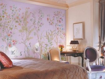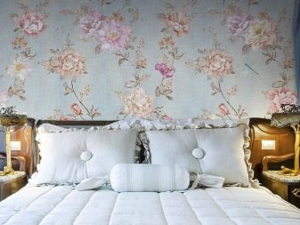 تعتبر أكثر الخيارات شيوعًا هي أغطية الجدران في زهرة صغيرة وكبيرة. بالطبع ، يمكن أن تتنوع الزهور: زهور الأقحوان ، زنابق الوادي ، والورود ، وكذلك أي زهور غريبة ، على سبيل المثال ، بساتين الفاكهة ، يمكن أن تتباهى على ورق الحائط. سيقدر خبراء التفرد الحقيقيون بالتأكيد حقيقة أن بعض الشركات تقدم ورق حائط فريد مرسوم يدويًا على شكل مطبوعات زهرية. يمكن أن تسلط هذه الخيارات الضوء على حالة أي غرفة نوم ، لكنها تكلف ثروة.