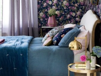 - عادة ما يتم اختيار الزهور الصغيرة الخافتة للأسلوب الداخلي للبلد أو الطراز القديم أو بروفانس ، لكن مجموعة متنوعة من الخيارات الكبيرة للحصول على ظل مشرق أو حتى حمضي ستتناسب بشكل أفضل مع الطراز الحديث لغرفة النوم الداخلية.