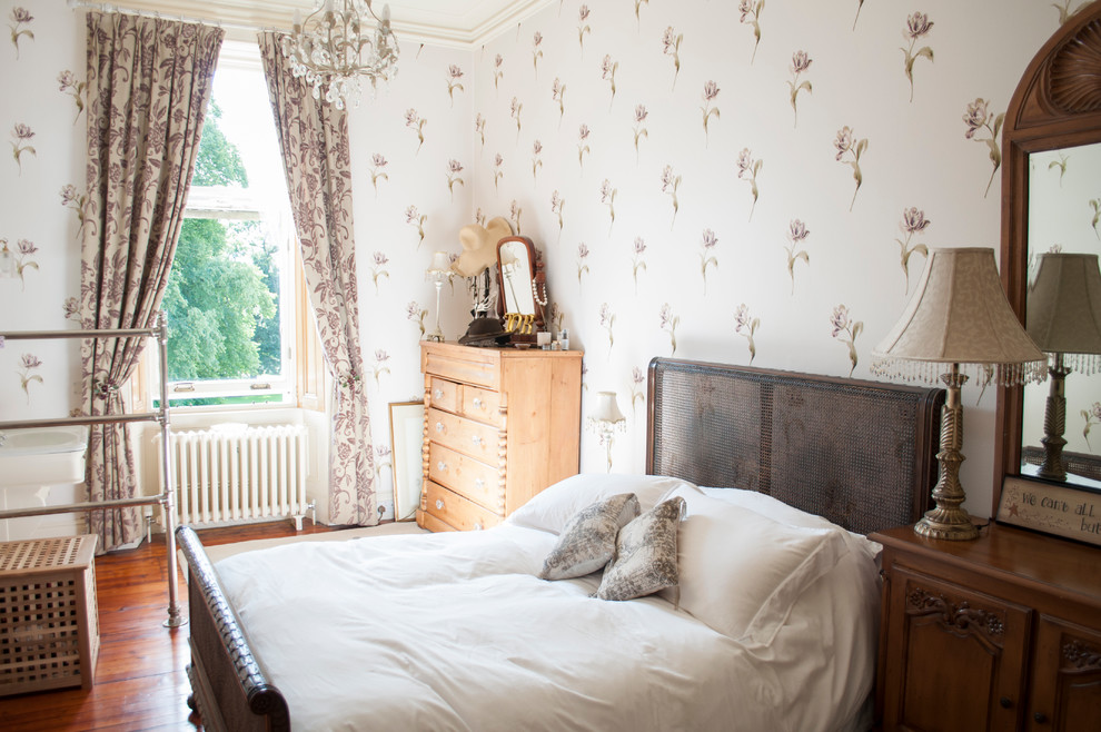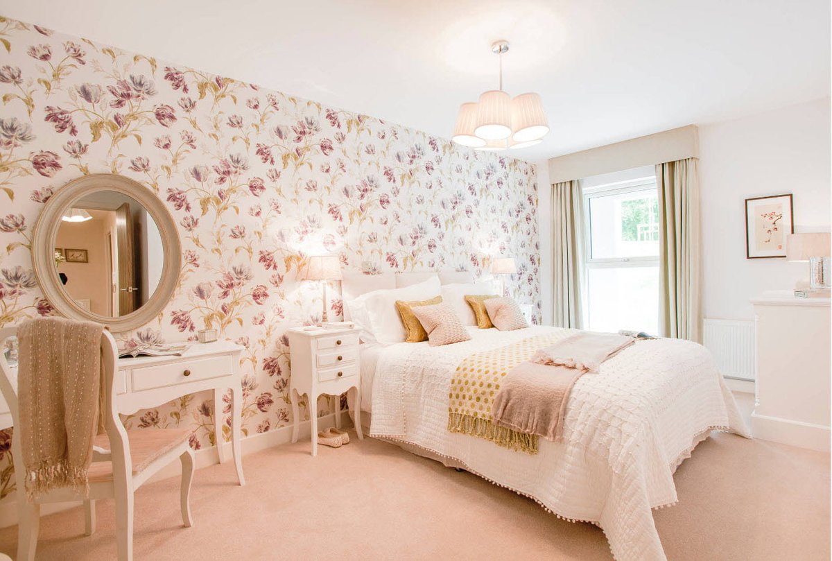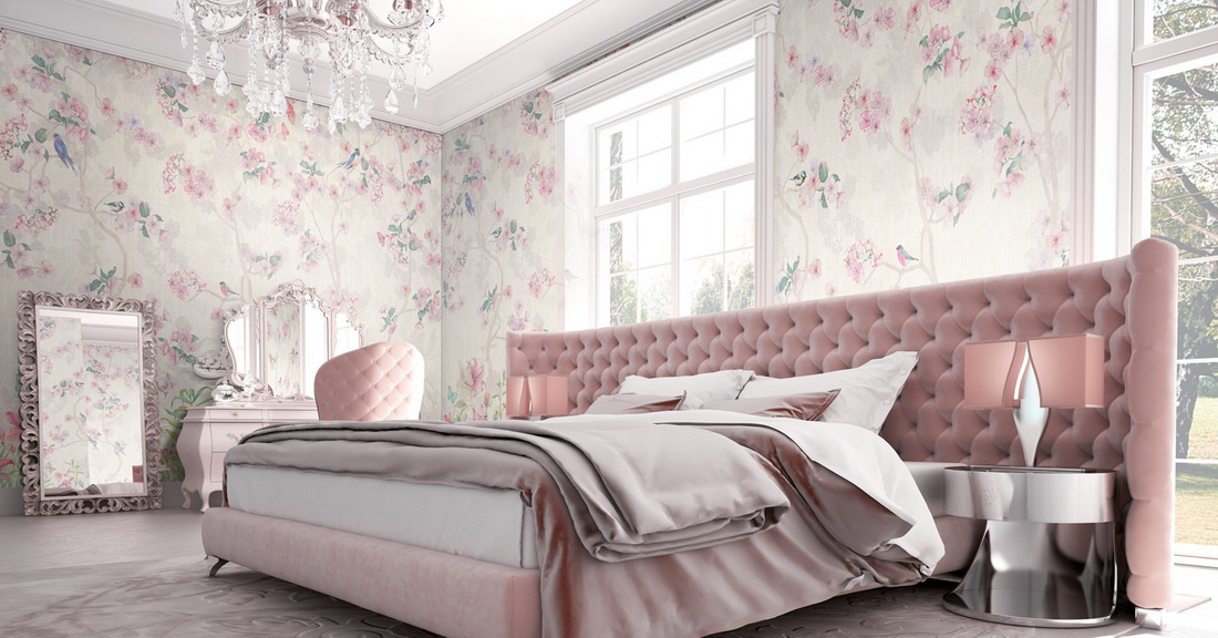 اختيار ورق الحائط مع الزهور في غرفة النوم