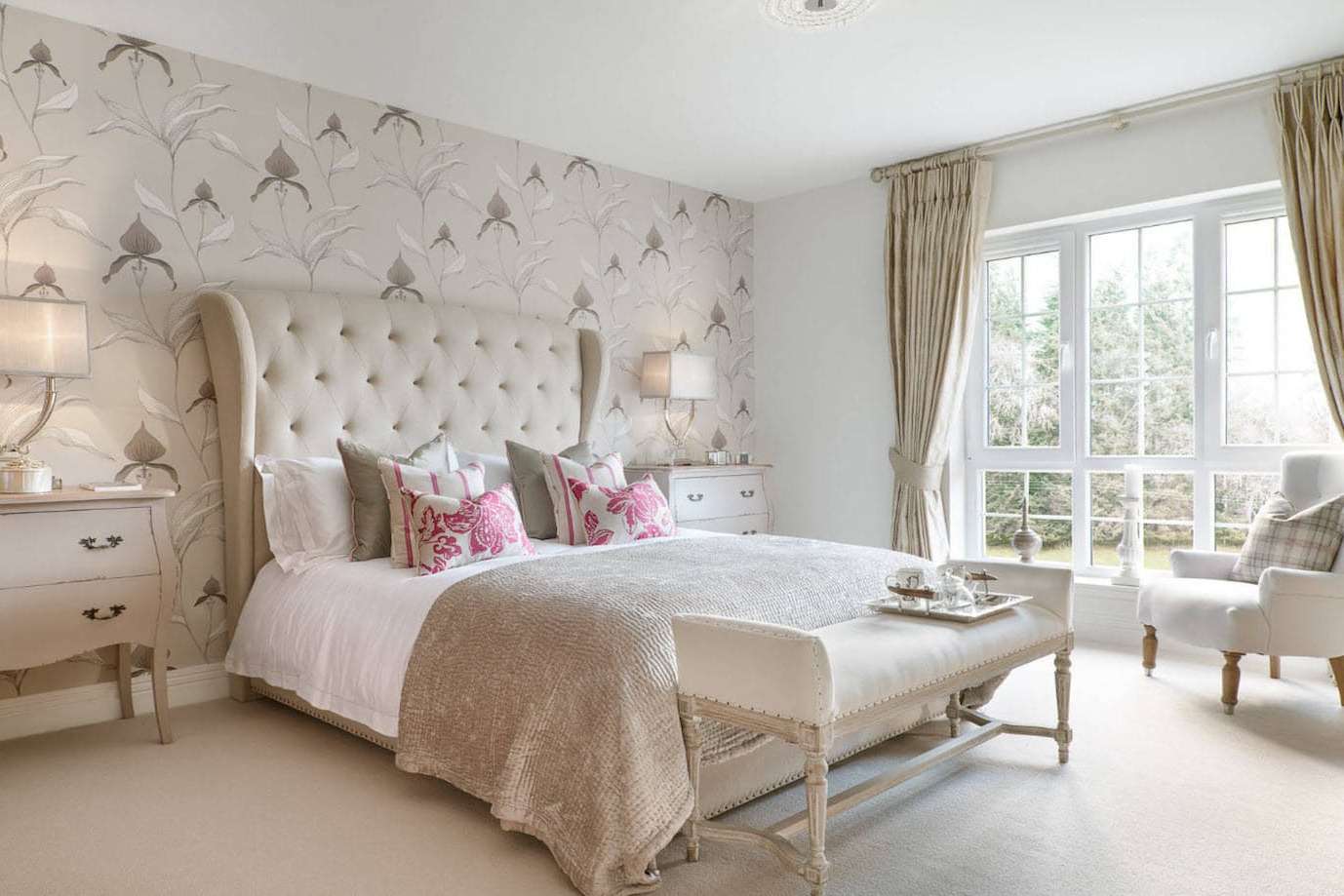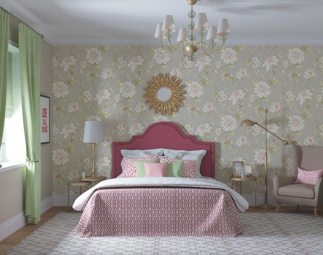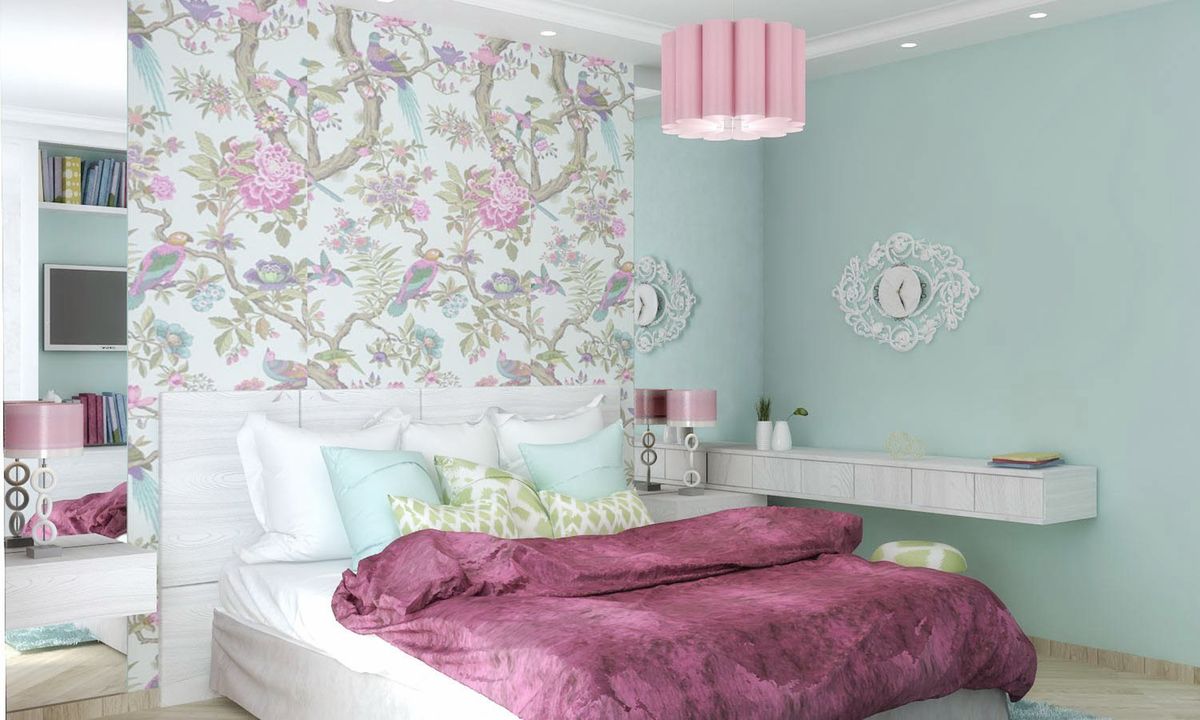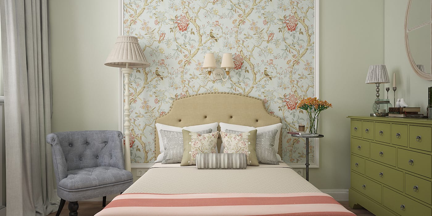 - عند اختيار خلفيات زاهية بأزهار وأوراق غنية يُنصح باختيار إعداد محايد لغرفة النوم في المستقبل ، أي أن الأثاث والإكسسوارات المشرقة لن تكون مناسبة هنا.