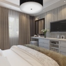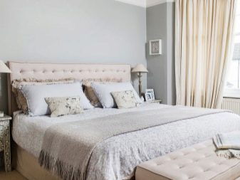إذا كنت ترغب في جعل غرفة النوم بالكامل في الظلال قيد الدراسة ، فستبدو لطيفة للغاية. في هذه الحالة ، يمكنك اختيار ، على سبيل المثال ، الظل البودرة للستائر ، الرمادي والبيج للجدران ، البيج البني للأرضية. في نفس الوقت ، سيكون السقف أبيض ، يمكنك إضافة سرير أبيض إلى غرفة النوم ، واختيار الظل البودري أو الرمادي البيج للمنسوجات.