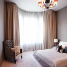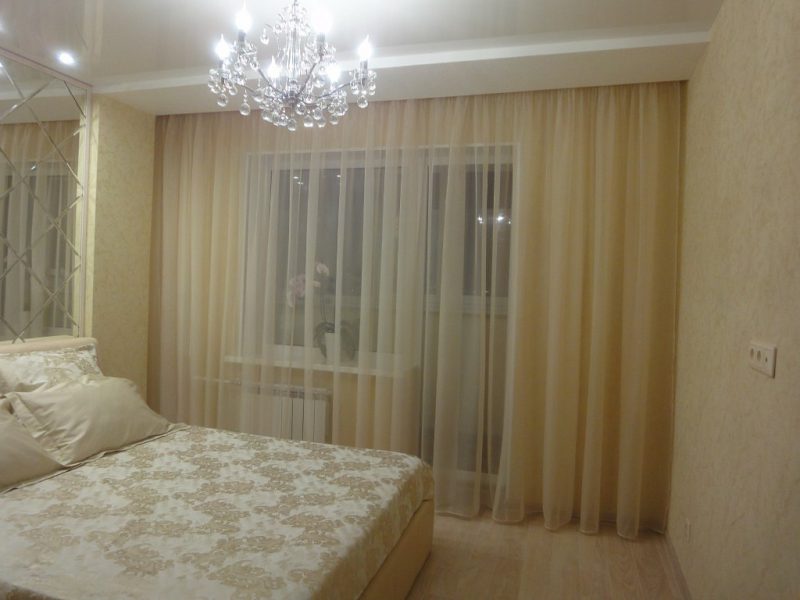 - ستائر شفافة سيبدو أيضًا جيدًا ، ولكنه مناسب لأولئك الذين يحبون الكثير من الضوء في غرفة النوم. ومع ذلك ، بالنسبة للجانب الشمالي ، سيكون خيارًا جيدًا ، وسيضيف اللون البيج الدفء إلى الغرفة.