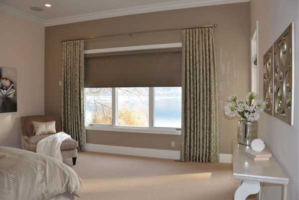 - نوعان من الستائر ذات الظلال المختلفة هما أيضًا زخرفة نافذة جيدة.... البيج الرمادي والكتان يبدوان رائعين معًا. كل شيء آخر في غرفة النوم لا يكسر الانسجام أيضًا ، فالظلال البنية والذهبية هي لمسات مثالية في الصورة العامة.