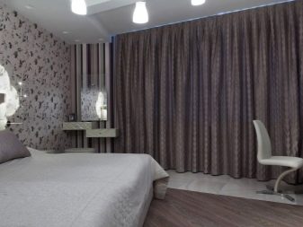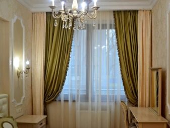 يتم التأكيد على الستائر ذات الألوان الداكنة من خلال الستائر أحادية اللون ذات الألوان الفاتحة. يمكنك اختيار أورجانزا فاخر للستائر المصنوعة من التفتا مع التطريز أو الساتان.