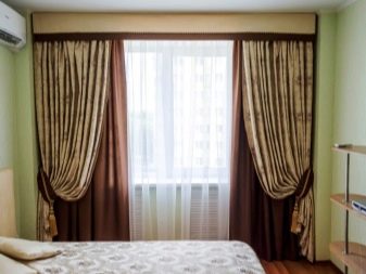 يتم تعليق الستائر فوق ستارة شفافة - كقطعة قماش الظل الثانية والرئيسية. يجب أن تعمل المنسوجات الخاصة بالستائر القاتمة على تعتيم الإضاءة ومنع الوصول إلى أعين المتطفلين وأداء وظيفة تزيينية.