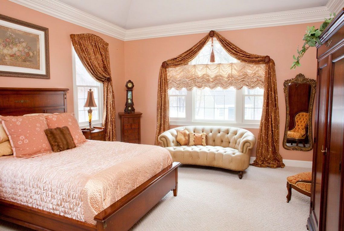 عند اختيار المنسوجات لصنع الستائر في غرفة النوم ، عليك أولاً التفكير في خلط (خلط) الألوان.