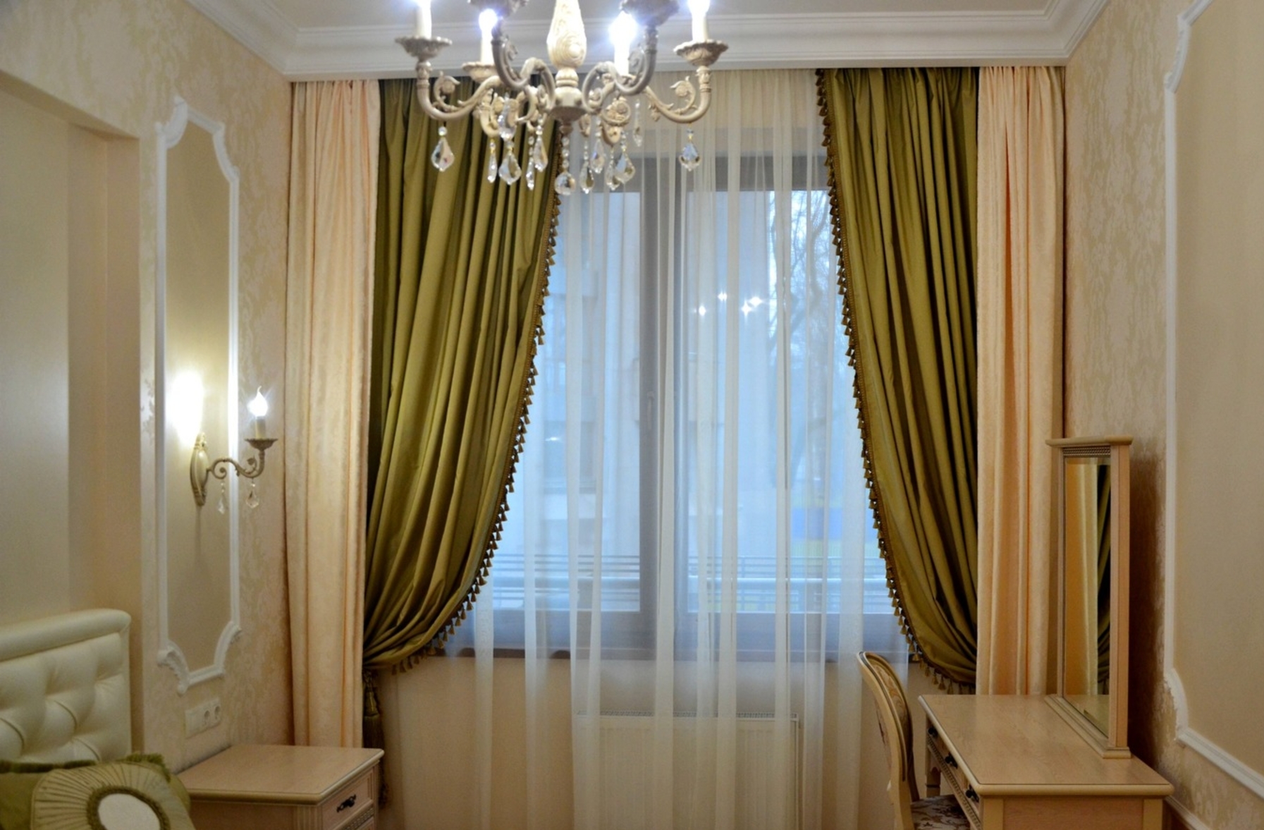 ستائر - ستائر من قماش كثيف ومقاوم للضوء ، وتتمثل وظائفها الرئيسية في استكمال التصميم والحماية من أشعة الشمس واختراق أعين المتطفلين من الشارع ليلاً ؛