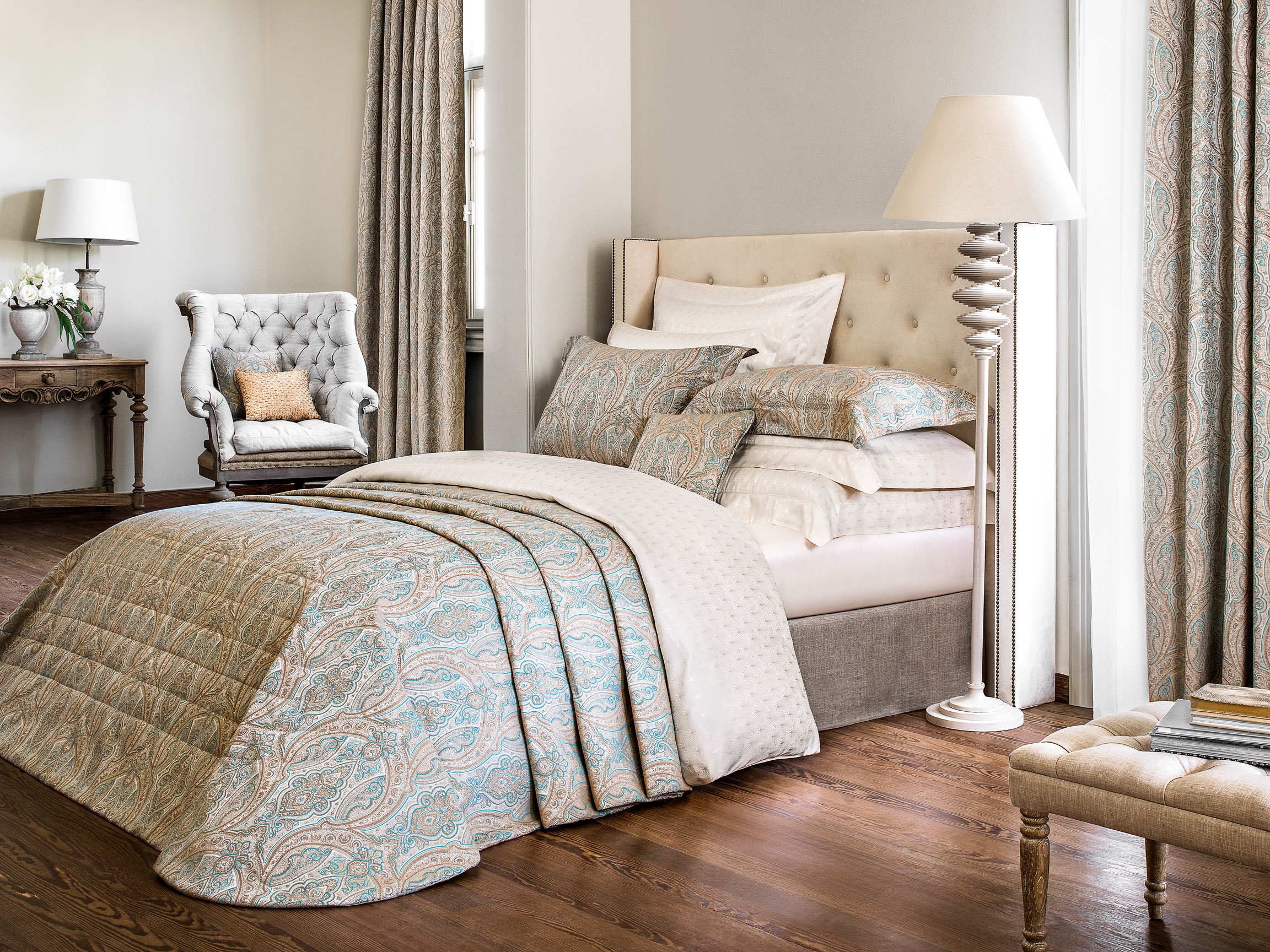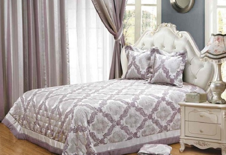 - فيلفيتين - قماش مخملي ذو مضلع عريض أو ضيق ، مصنوع من القطن الطبيعي أو الألياف المخلوطة. يتم استخدامها في تصميم غرف النوم في مجموعة متنوعة من التصميمات الداخلية: من الكلاسيكية إلى الحديثة والعالية التقنية.