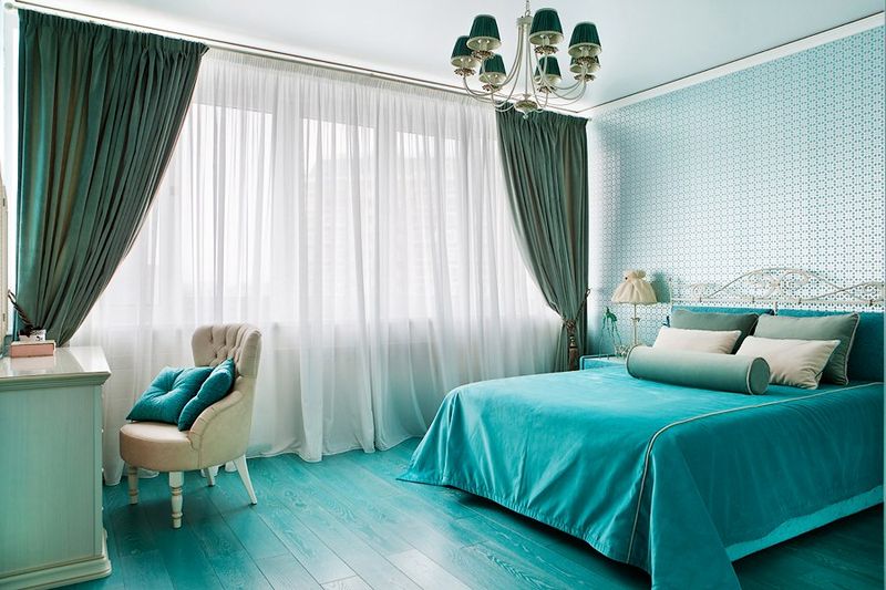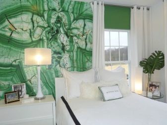 في أي منزل ، سيكون الظل الملكيت مناسبًا. قد يختلف تبعًا للجمع بين الألوان الأخرى. اعتمادًا على الزخرفة المستخدمة في مكان قريب ، يمكن أن يلعب الملكيت بالظلال الباردة والدافئة. يتم استخدام هذه الميزة بنشاط من قبل المصممين عند ترتيب أماكن النوم.