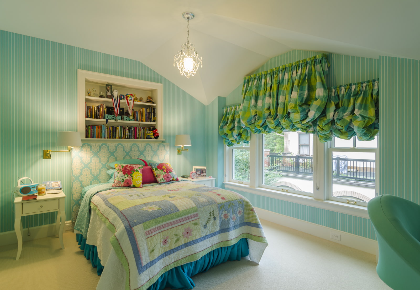 تعتبر الألوان الزاهية مثالية لغرفة المراهق أو غرفة الطفل ، ولكن حتى هنا تحتاج إلى مراقبة الإجراء. بمرور الوقت ، تصبح مزعجة. لذلك ، يتم استخدام هذه النغمات في شكل جرعات في شكل مطبوعات غير مزعجة ، جنبًا إلى جنب مع العديد من اللمسات الناعمة ذات الظل المماثل على غطاء السرير والوسائد.