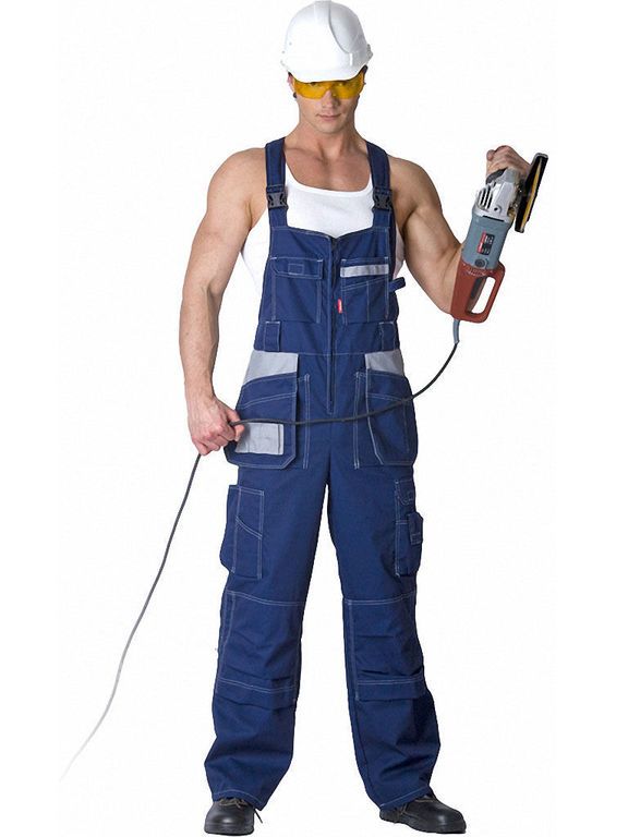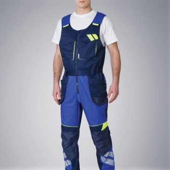 على سبيل المثال ، في عامل ذكر تناسب "تكنو" يشتمل على سترة ومريلة ، ومجهز بجميع الجيوب اللازمة للأدوات وفتحات التهوية.