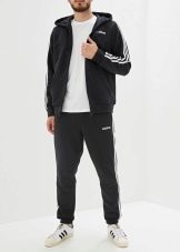 تحتوي المجموعات على الألوان الأكثر شيوعًا للملابس الرياضية - الأزرق والأسود والرمادي والتمويه. بالطبع ، هناك تصميم ثلاثي في التصميم ، يتم من خلاله التعرف على منتجات أديداس.
