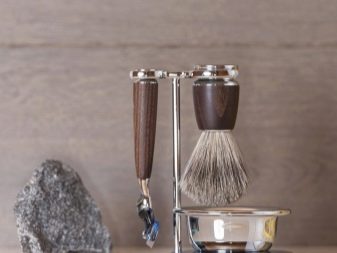 اختيار فرشاة الحلاقة مهم بنفس القدر. ستعتمد جودة الحلاقة على مدى جودة رغوة الصابون. تأتي فراشي الحلاقة بأحجام مختلفة ، بشعر صناعي أو طبيعي بدرجات متفاوتة من الصلابة ، بينما الفرش الاصطناعية أكثر متانة. ستحتاج إلى وعاء خاص لتحريك الرغوة. بالطبع يمكنك استخدام أي واحدة ، ولكن إذا كنت ترغب في تقديم هدية ، فمن الأفضل أن تكون مجموعة من فرشاة حلاقة ووعاء ، مصنوعين بنفس الأسلوب. ملحق مفيد للغاية هو حامل ماكينة الحلاقة بفرشاة حلاقة. لتصنيعها ، يتم استخدام المعدن والخشب والبلاستيك ، وتستخدم ألوان وأشكال مختلفة في التصميم. في الحامل ، سيتم تخزين فرشاة الحلاقة بشكل صحيح - مع وضع الوبر لأسفل.