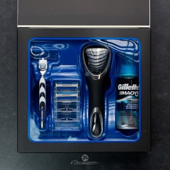 عند إعداد هدية لرجل ، يمكنك بالطبع تجميع مجموعة من الوسائل المتفرقة الضرورية. هذا ينطبق بشكل خاص على المنتجات منخفضة الميزانية. ولكن حتى في هذه الحالة ، من الأفضل اختيار منتجات من نفس الشركة المصنعة. لديهم تصميم واحد ، وبالتالي ستبدو الهدية أكثر روعة. لاختيار المجموعة الصحيحة ، تحتاج إلى النظر في بعض المعايير. بادئ ذي بدء ، عليك أن تعرف أي ماكينة حلاقة يفضلها الرجل. إذا كان يستخدم آلة بها أشرطة ، فمن غير المرجح أن يكون سعيدًا بتلقي ماكينة حلاقة مستقيمة كهدية ، حتى في التصميم الأصلي.