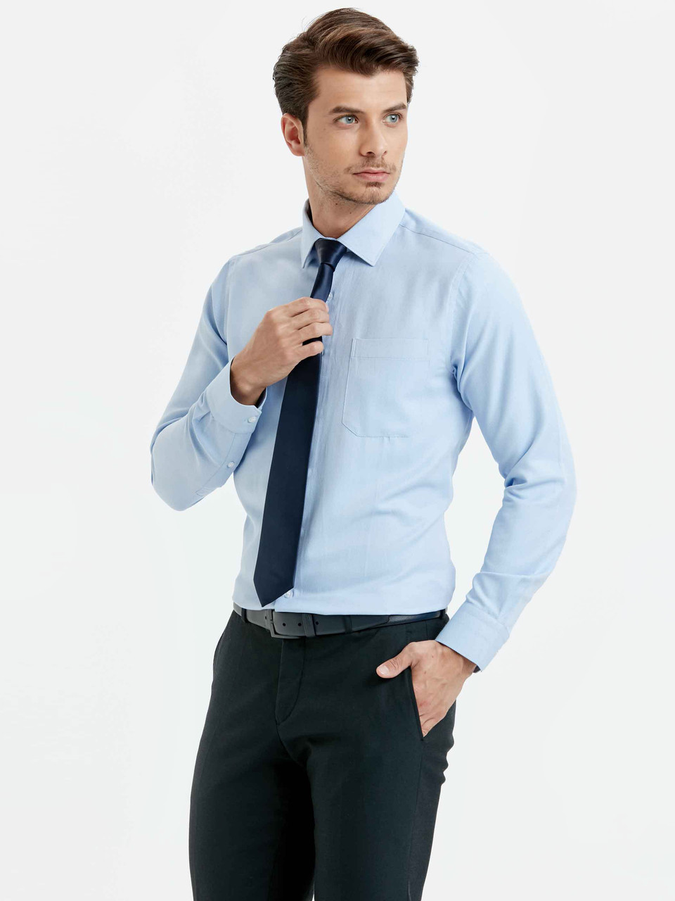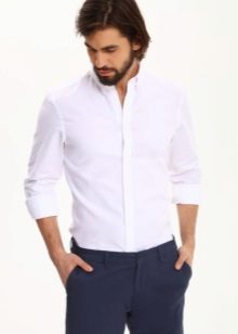 - عند اختيار القميص يفضل اللون الأبيض. في هذه الحالة ، يُسمح أيضًا بظلال اللون الرمادي أو الأرجواني أو الوردي أو الأزرق. يُفضل استخدام القمصان العادية ، على الرغم من وجود بعض الخيارات المخصصة في خزانة ملابسك (مثل القمصان المنقوشة أو المخططة).