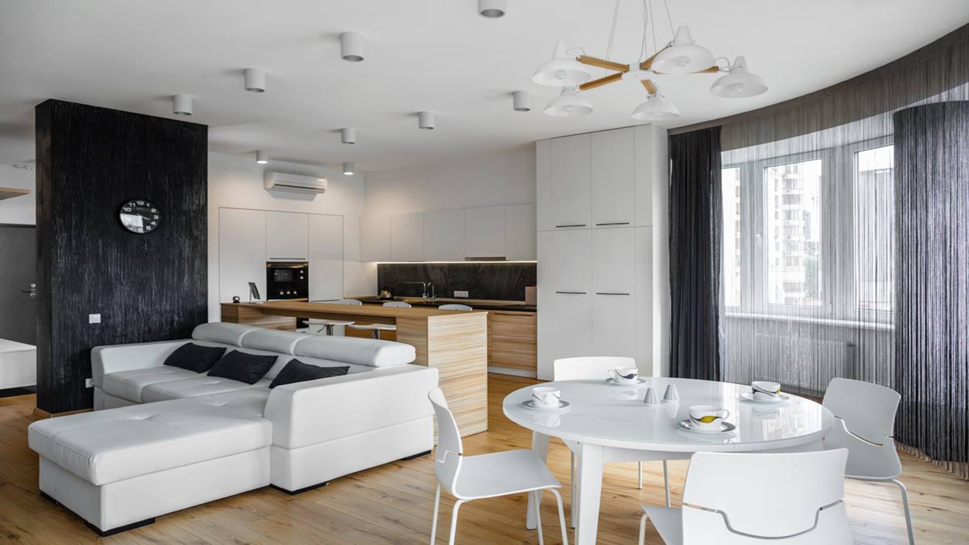 تقع منطقة الجلوس وغرفة النوم عادةً بالقرب من النافذة. يقوم مالك هذه الشقة بتجهيز المبنى وفقًا لتفضيلاته ووسائل الراحة الخاصة به. تسمى الاستوديوهات أيضًا بأماكن المعيشة التي يتم فيها دمج المطبخ مع غرفة المعيشة وفقًا للمشروع الأصلي أو في عملية إعادة تطوير الشقة. عادة ما يتم تقديم هذه المساكن في سوق الإسكان الثانوي.