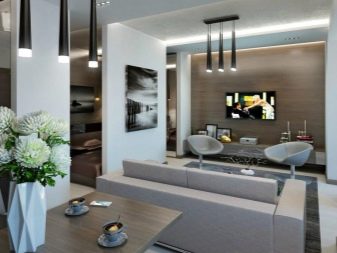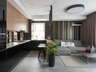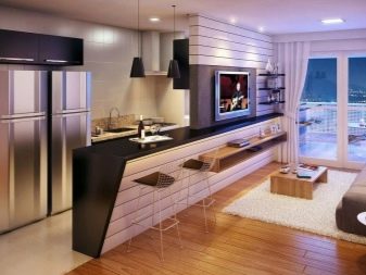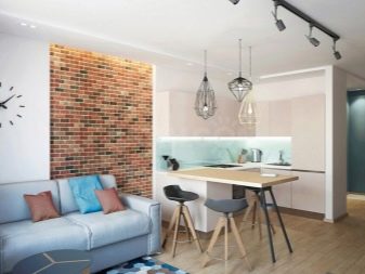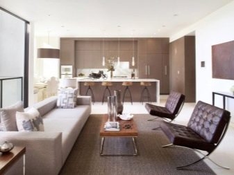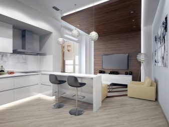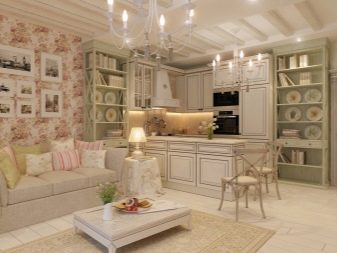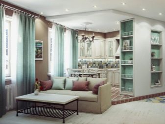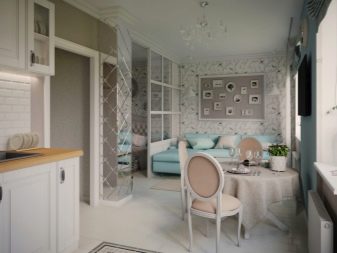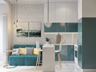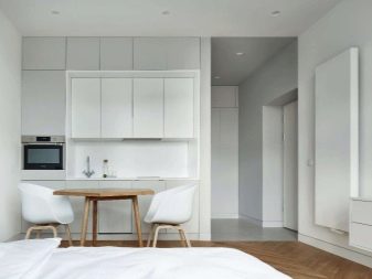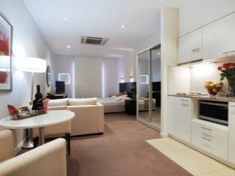 ولكن هنا أيضًا ، من المهم التغلب على المساحة بشكل صحيح.... تلعب منطقة الضيف التقليدية دورًا رئيسيًا في التكوين. يجب أن يكون الأثاث مقتضبًا وعمليًا. يجب ألا يكون هناك عناصر زخرفية. إذا وصلت مساحة الاستوديو إلى 19 مترًا مربعًا. م ، يمكنك بعد ذلك تجهيز زاوية مطبخ كبيرة إلى حد ما.