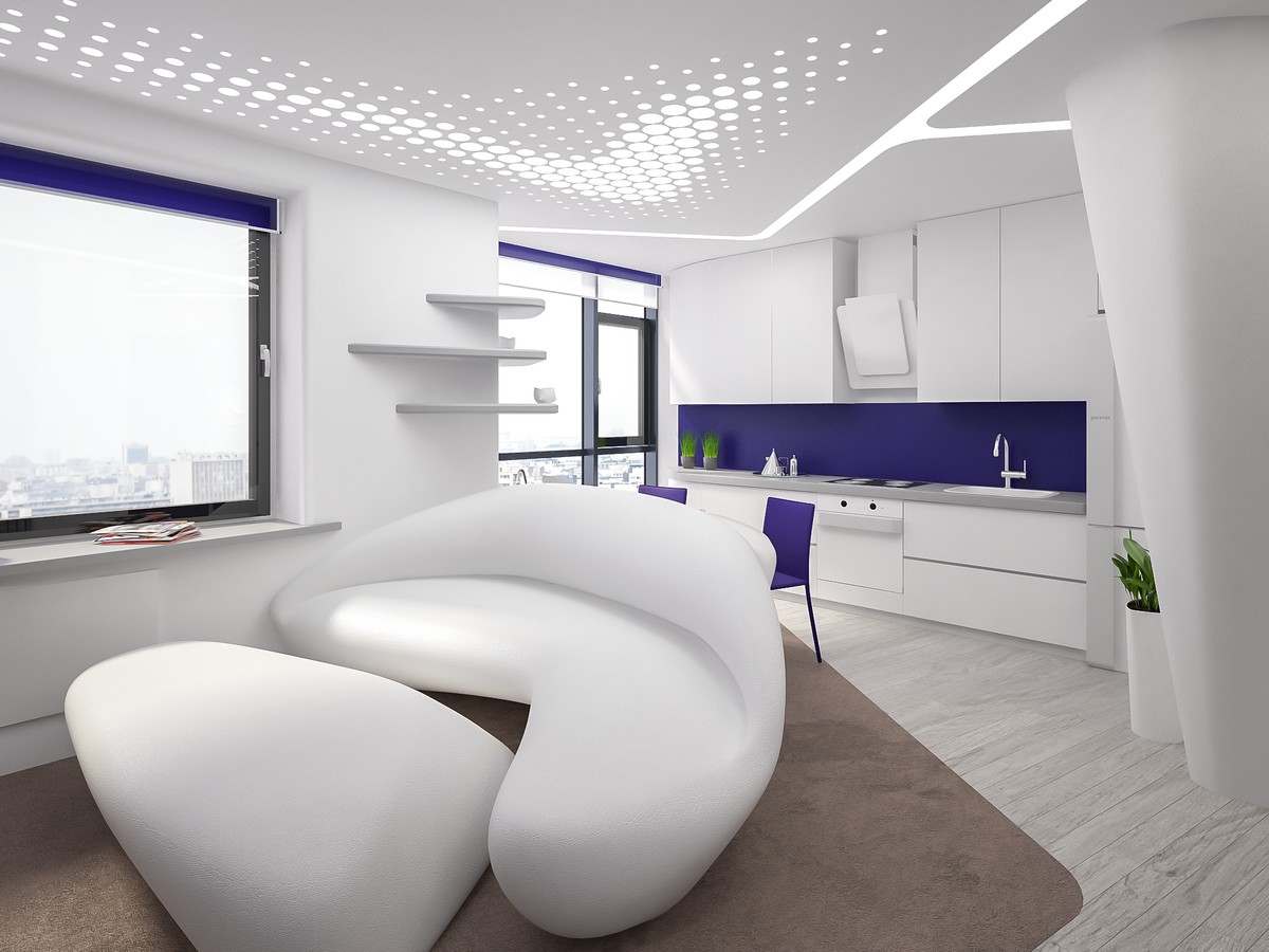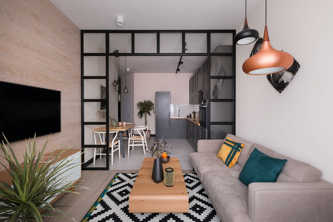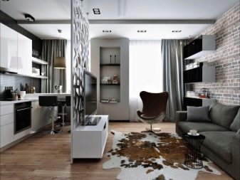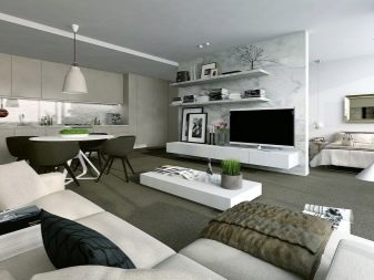 لكن لا يكفي أن تقصر نفسك على وصف كيف يمكنك تخطيط الاستوديو والمكان الذي يجب تخصيصه لغرفة المعيشة والمناطق الأخرى فيه. الحقيقة انه إعادة التطوير الكامل وتنظيم المناطق المعزولة بالجدران ليس فقط صعبًا تقنيًا ومشكلة قانونية ، إنه يدمر جوهر شقة الاستوديو ويمنعها من الاستفادة من مزاياها المكانية. هذا هو السبب في أنه من المهم للغاية الانتباه إلى تقنيات تقسيم المناطق المساعدة. من بين هؤلاء: