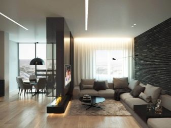 يوصي الخبراء باستخدام نافذة فرنسية. يتم تنظيم الإضاءة الاصطناعية على عدة مستويات في وقت واحد. يمكن ترتيب الإضاءة العامة من الأعلى في منتصف الغرفة وحول المحيط. لكن في بعض الأحيان يتم إعطاء الأفضلية لإضاءة المناطق ، مع التركيز على مناطق محددة بدقة من الغرف.عندما تكون هناك حاجة أيضًا لتقسيم المناطق ، فمن الضروري استخدام أنواع المصابيح التي تختلف في المظهر والخصائص البصرية.