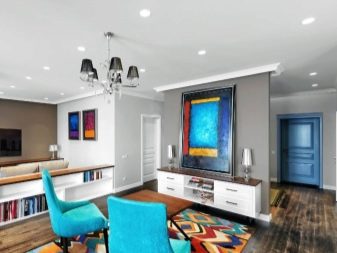 في الاستوديوهات الصغيرة ، ليس من المنطقي استخدام أجهزة الإضاءة الحجمية. من بين جميع المصابيح ، الأفضل هي تلك التي تستهلك أقل تيار وتستمر لفترة أطول. على سقف ممتد أو من اللوح الجصي ، ستبدو مصادر الإضاءة النقطية رائعة. إنها مناسبة في نفس الوقت للإضاءة العامة وللتأكيد على المجالات الوظيفية.
