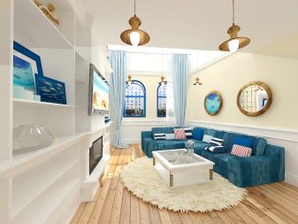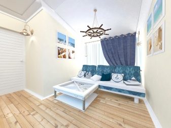 يفتح استخدام النمط البحري وجهات نظر مثيرة للاهتمام.... لا يمكنك فقط اختزاله إلى تركيبة معادلة من الدهانات البيضاء والزرقاء في الداخل. يجب أن تكون عناصر الخشب الطبيعي موجودة أيضًا. ينصح بشدة تزيين الأشياء "مع التاريخ". قد تكون بعض الأفكار الجيدة أيضًا: