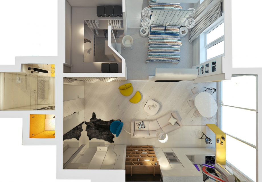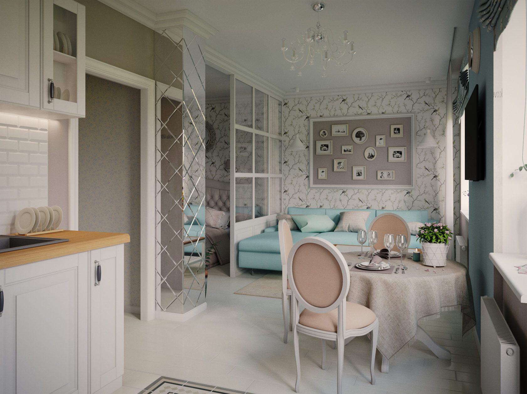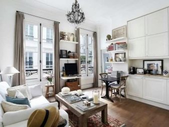بالطبع ، لا يمكن تجسيد ميزات الكلاسيكيات مثل السقف العالي والمساحة الفسيحة في جميع الاستوديوهات ، وبالتأكيد ليس في تلك التي تم إنشاؤها من غرفة واحدة أو غرفتين.