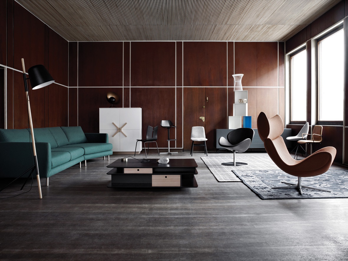 يمكن أن يكون الأثاث حديثًا وعتيقًا ، طالما أنه يتناسب بصريًا مع التكوين. الطريقة الأصلية لتقسيم المناطق ، والتي تعتبر نموذجية للطابق العلوي ، هي استخدام سجاد مختلف لكل منطقة.