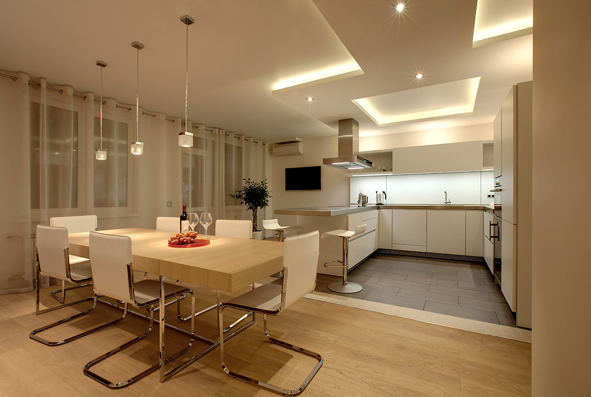 - ولكن يمكنك البدء من هذا التصميم الداخلي بمزيج من المطبخ ومناطق الضيوف. كان هناك مكان للأثاث الخشبي والإضاءة الزخرفية والثريات المعلقة الأصلية.