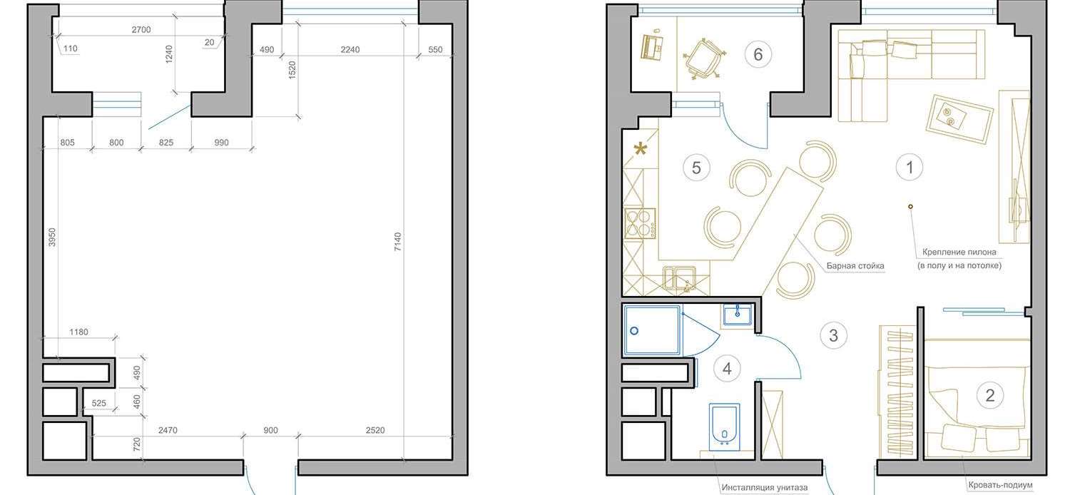 ولكن إذا كانت مساحة الاستوديو منظمة ليس بسبب الندرة ، ولكن بسبب الانجذاب نحو هذا الشكل المعين ، على مساحة كبيرة ، فسيبدو مختلفًا تمامًا. ثم ببساطة لا يوجد أي معنى "للتقلص". لكن الحديث "بعبارات عامة" لا يسمح بحل مشاكل معينة! بالنظر إليهم ، يجدر بنا أن نعيش في البداية على فستان اليورو.