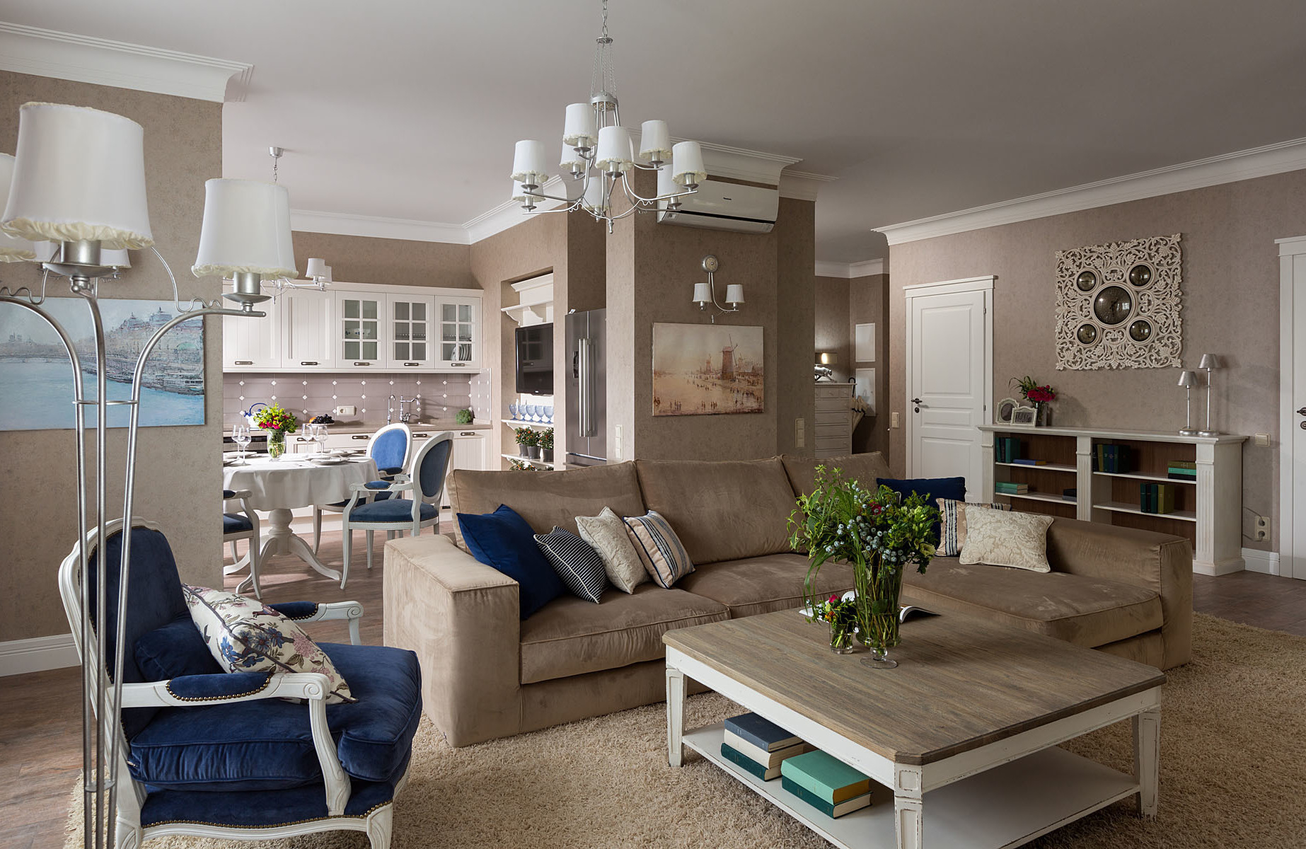 يجب أن تكون المفروشات خفيفة وأنيقة. أي ثقل بصري هو بطلان قاطع.... يتم تشجيع استخدام الزخارف الصنوبرية في الزخرفة. الممرات ذات المنحنيات الملساء شائعة. الحديث أكثر ملاءمة من بروفانس أو الكلاسيكي للتكنولوجيا الحديثة بكل مظاهرها.