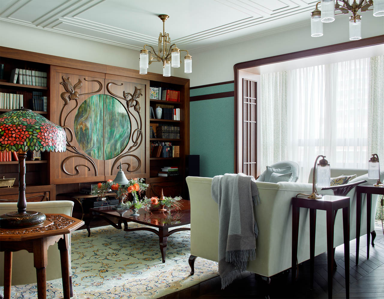 في بيئة فن الآرت نوفو ، تكون الألوان الوردية والرمادية والبنية هي الأكثر جاذبية. قد تتخلل كميات محدودة من ألوان التمييز الأخرى. يُنصح بعدم نسيان الزخارف النباتية والأثاث ذي الأرجل المنحنية.