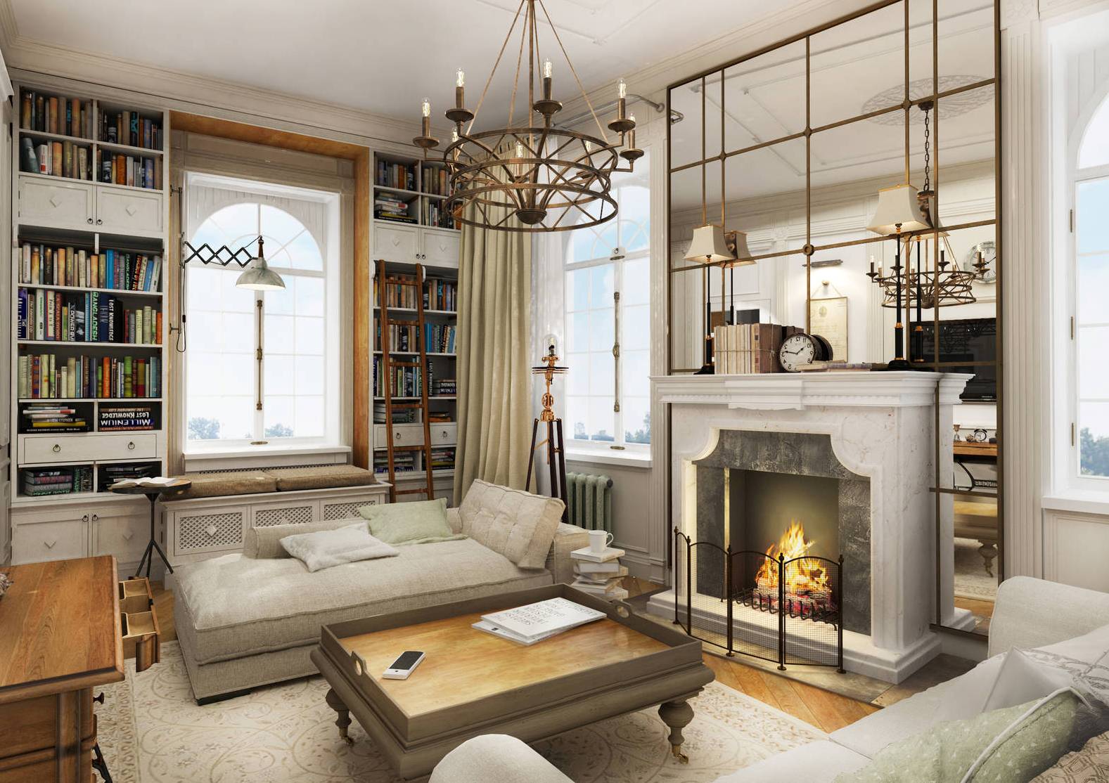 ميزة مهمة للغاية هي التركيز على استمرارية التقاليد العائلية ، مما يجعل استخدام الأثاث العتيق إلزاميًا. يمكنك بوعي الجمع بين المكونات الأسلوبية في أوقات مختلفة ، واللعب على النقيض منها. تسود الظلال غير اللامعة ، اللمعان غير مقبول ؛ يوصى باستخدام مدفأة ، على الأقل مزخرفة ، وطاولة لحفلات الشاي وتزيين الجدران بالجص.