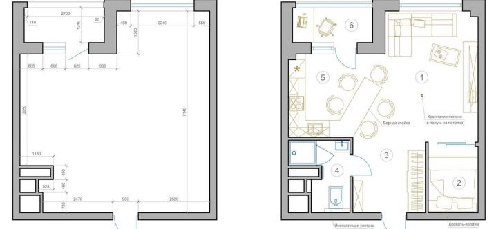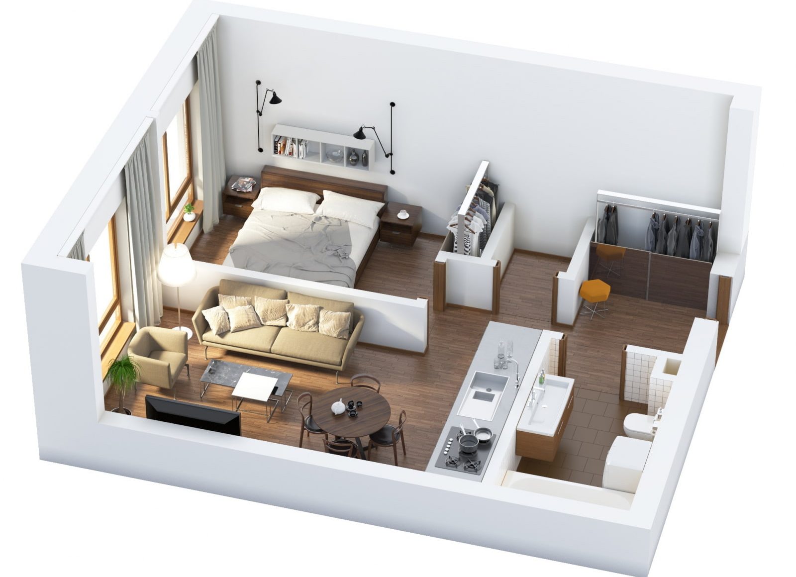 إذا كان عليك التعامل مع تصميم شقة استوديو ، فمن المستحيل الاستغناء عن مشاريع وخطط واضحة. يجب أن يوفر الرسم البياني معلمات حرفياً كل جزء من الغرفة وموقعها النسبي. دع المالكين أنفسهم ، في الغالب ، غير قادرين على تغيير هذا ، ولكن من ناحية أخرى ، يمكنهم التغلب على هذا بشكل صحيح. يمكن لكل منطقة وظيفية أن تجد مكانها. الأبواب الداخلية ، بالطبع ، مستبعدة تمامًا ، عليك تقسيم المساحة بوسائل مختلفة تمامًا.