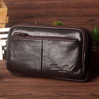 - مصداقية. في إكسسوارات الرجال ، يوفر المشبك حماية إضافية لمحتويات الحقيبة. إذا كانت عارضات الأزياء النسائية مزينة عادةً بزر صغير أو قفل إطار ، فإن نماذج الرجال تكملها سحاب كثيف.