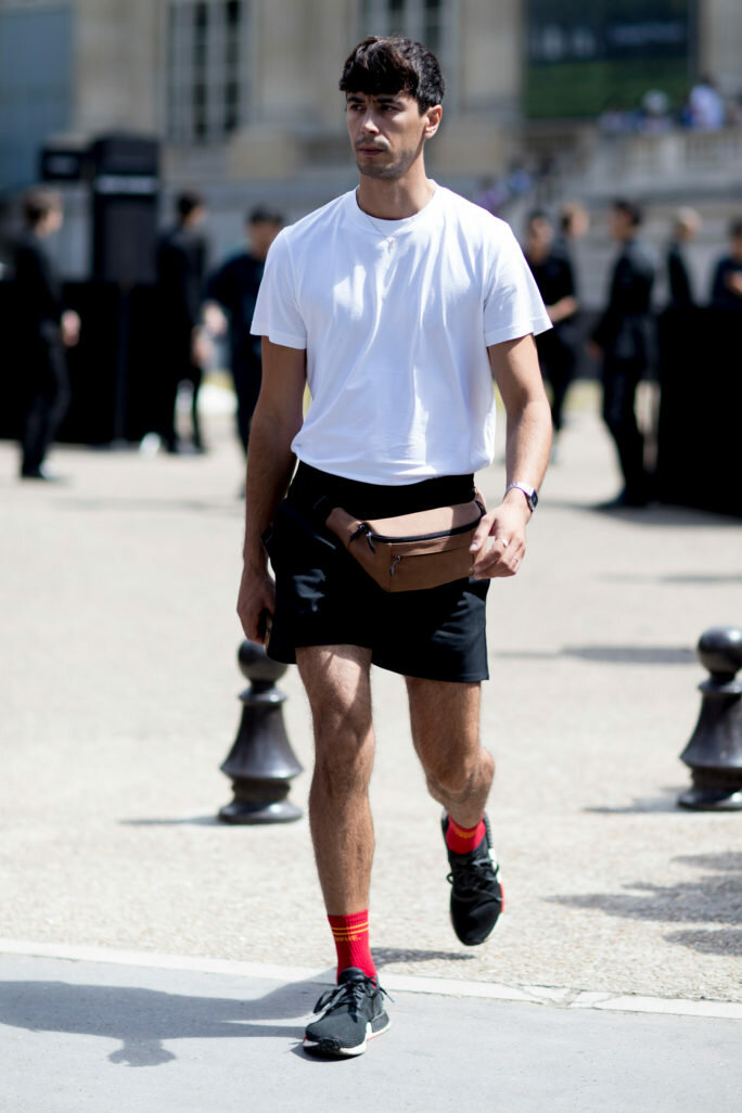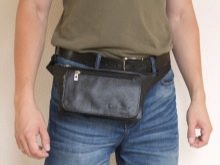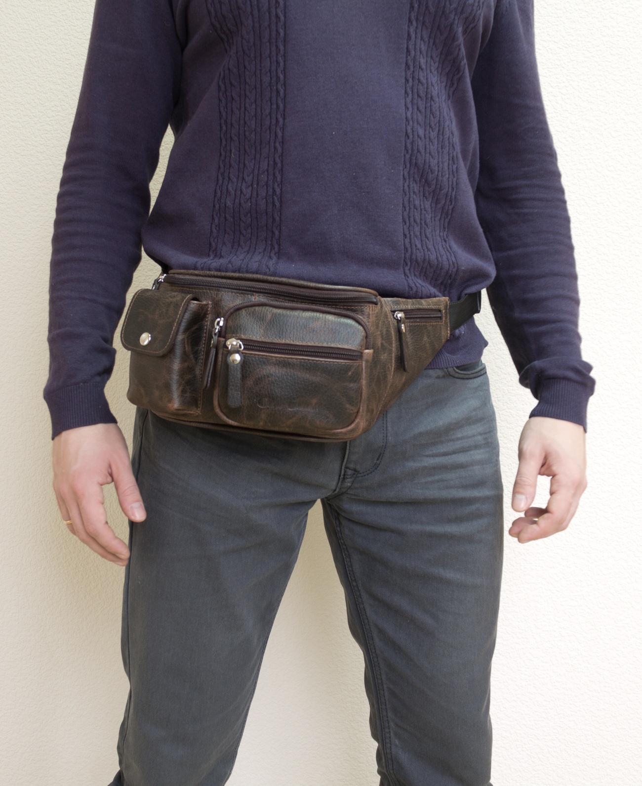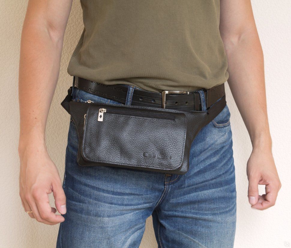 - حقيبة بحزام. هذا النموذج مناسب للرجال الذين يجرون أو يركبون الدراجات. لطالما أصبحت حقائب الحزام جزءًا لا يتجزأ من الأسلوب الرياضي ؛ يمكنك وضع المال والهاتف والمفاتيح واللاعب والعديد من الأشياء الصغيرة المفيدة الأخرى هنا. إذا كنت ترغب في ذلك ، يمكنك وضع زجاجة ماء فيها وتأخذها معك للجري. عادة ما يتم ارتداء هذه الأكياس على المعدة أو دفعها إلى الجانب.عادة ما توضع المنتجات الصغيرة في منطقة الخصر ، ويتم خفض المنتجات الأكبر حجمًا على الوركين.