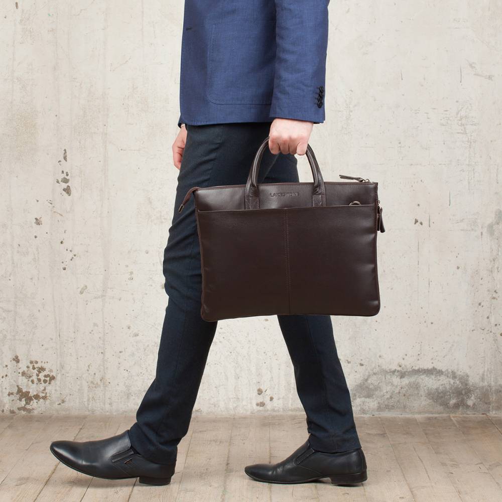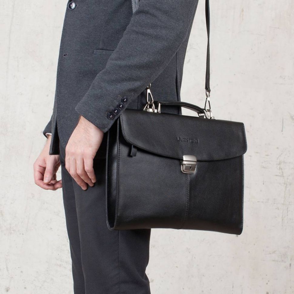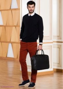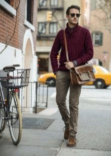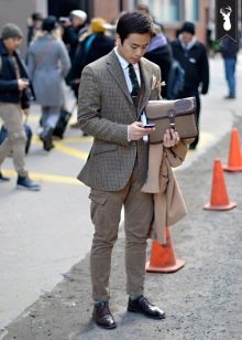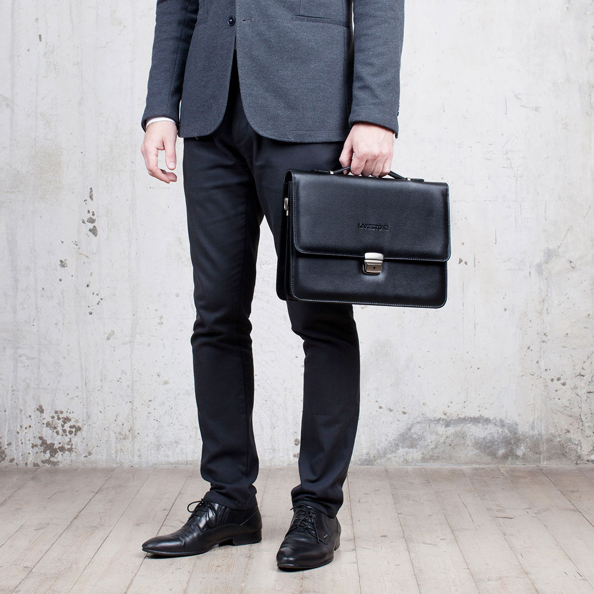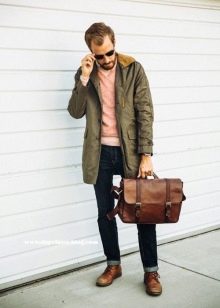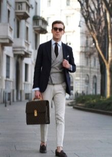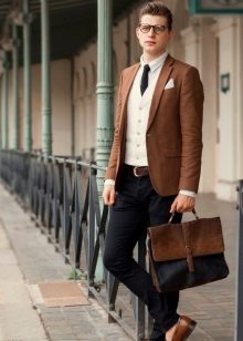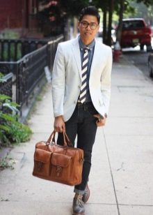 - حقيبة. هذه سمة إلزامية لأي رجل مشغول يتعين عليه التحرك كثيرًا وحل مشكلات العمل المهمة حرفيًا أثناء التنقل. يمكن أن تحمل الحقيبة وثائق وكتب وجهاز كمبيوتر محمول. يبدو هذا النوع من الحقائب أنيقًا للغاية ، ويؤكد على المكانة الاجتماعية العالية والرفاهية المالية لمالكها. تبدو المحافظ بشكل أفضل في أسلوب المكتب. ومع ذلك ، يمكنك دائمًا ارتدائه مع الجينز ، ولكن فقط إذا كنت ترتدي قميصًا كلاسيكيًا وسترة باهظة الثمن.