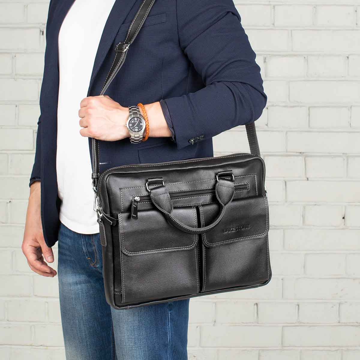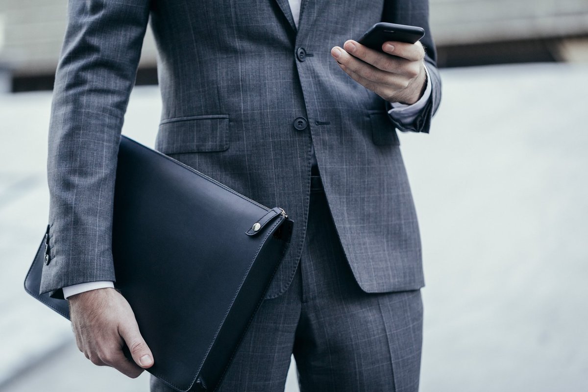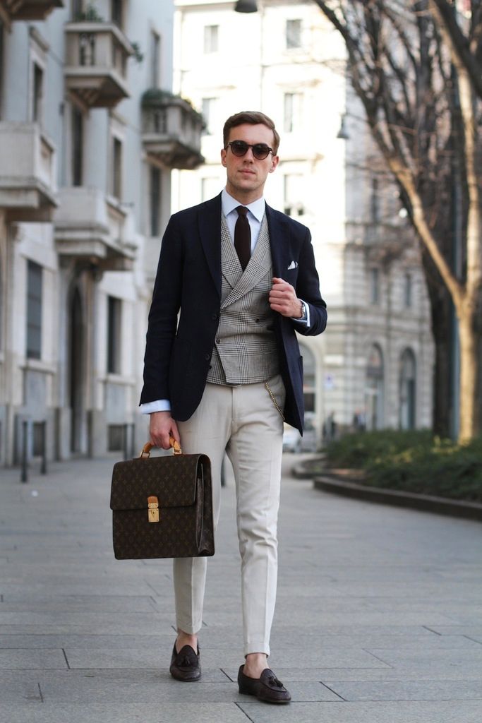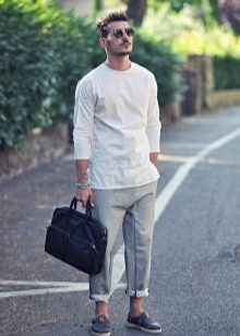 - حقيبة. هذه سمة إلزامية لأي رجل مشغول يتعين عليه التحرك كثيرًا وحل مشكلات العمل المهمة حرفيًا أثناء التنقل. يمكن أن تحمل الحقيبة وثائق وكتب وجهاز كمبيوتر محمول. يبدو هذا النوع من الحقائب أنيقًا للغاية ، ويؤكد على المكانة الاجتماعية العالية والرفاهية المالية لمالكها. تبدو المحافظ بشكل أفضل في أسلوب المكتب. ومع ذلك ، يمكنك دائمًا ارتدائه مع الجينز ، ولكن فقط إذا كنت ترتدي قميصًا كلاسيكيًا وسترة باهظة الثمن.
