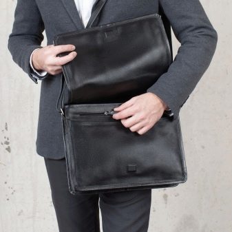 - حقيبة مجلد. هذا هو أحد الملحقات الأساسية لأي رجل أعمال. تسمح هذه الحقيبة لمالكها بتنظيم التخزين المنظم للأوراق المهمة ، بالإضافة إلى أنها تؤكد على المكانة العالية والوضع الاجتماعي للرجل. تقليديا ، مثل هذه المجلدات لها تصميم مقتضب يلبي تماما تفضيلات المديرين والمحامين والممولين وغيرهم من الأشخاص الذين ، بحكم طبيعة خدمتهم ، غالبا ما يجبرون على العمل مع الوثائق. تصنع هذه النماذج تقليديًا باللون الأسود أو الرمادي الداكن أو البني. تتميز بالهندسة الصارمة للخطوط ، والتي تتناسب بشكل متناغم مع قوس المكتب.
