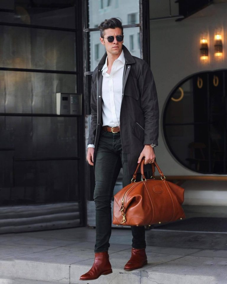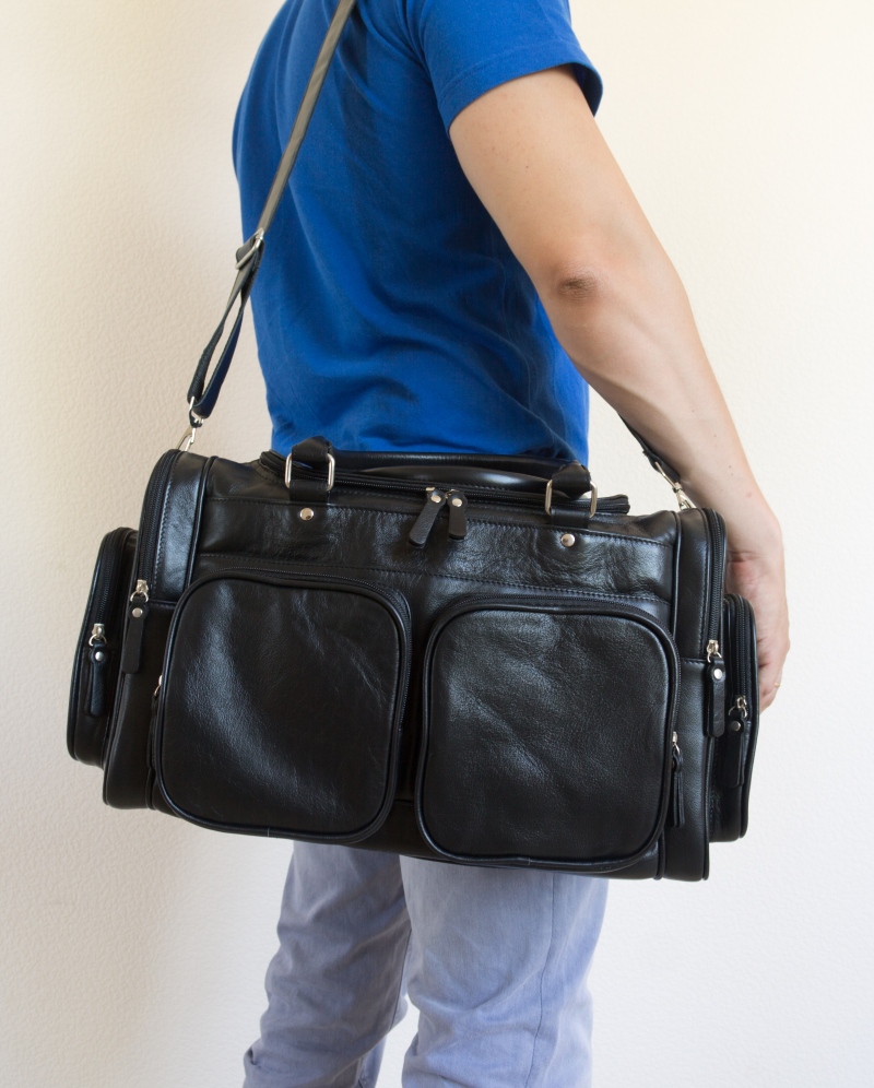 حقيبة سفر وحقيبة حمل تتميز بأبعاد مبهرة ، بحيث يمكن لأي رجل أن يلائم كل ما يحتاجه للسفر فيها. هذه الموديلات مثالية مع الملابس الرياضية والجينز والملابس ذات الطراز العسكري.