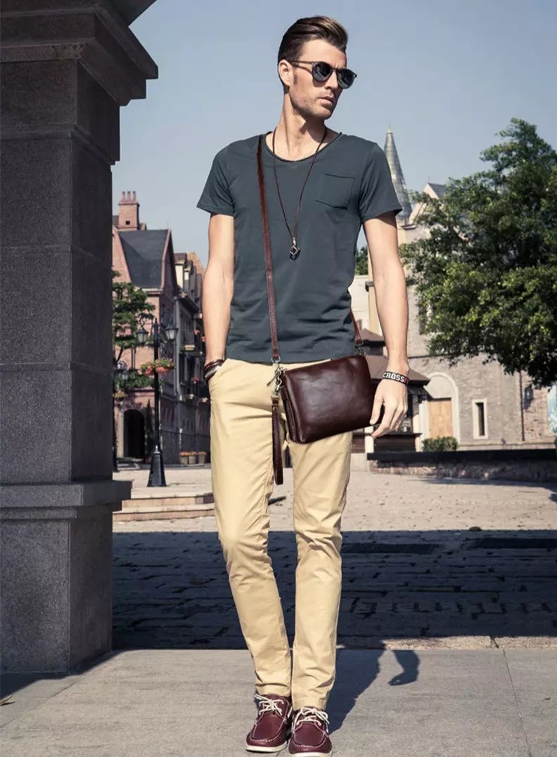 كيس نقود سارت الامور بشكل جيد مع سترة وجينز ، وفي الموسم الحار مع بنطلون كارغو وقميص. بغض النظر عن نوع حقائب الرجال ، يوصي المصممون بإعطاء الأفضلية نماذج وظيفية بألوان مقيدة - من الأسهل الجمع بين هذه المنتجات ومجموعة متنوعة من عناصر خزانة الملابس.