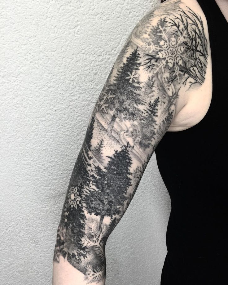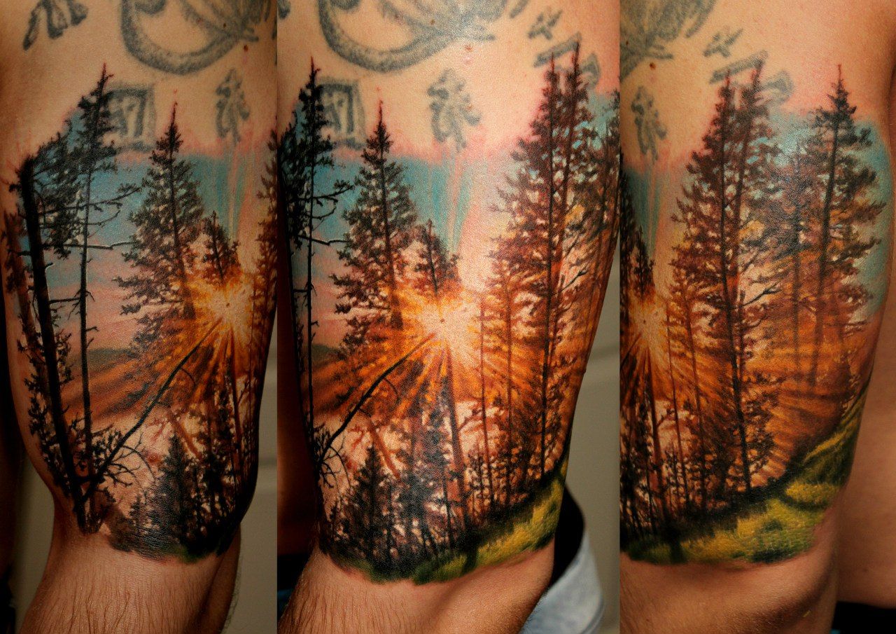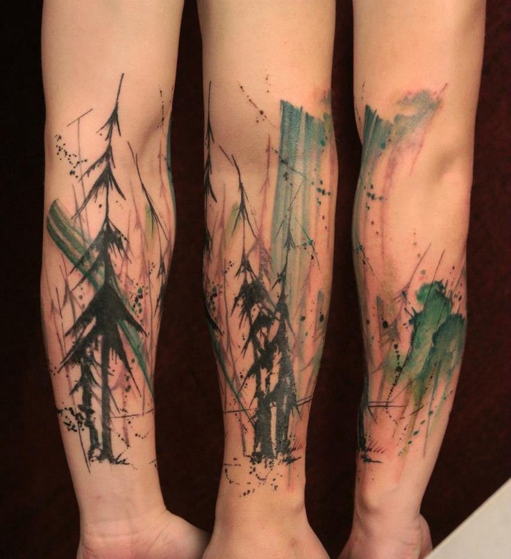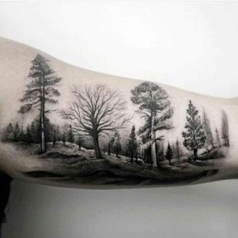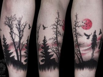 الوشم الذي يصور تفاصيل الغابة أو الغابة هو بحد ذاته ممتع من الناحية الجمالية ، فهو يتمتع بسحر الطبيعة ، وهو شيء طبيعي وطبيعي. ليس من المستغرب أن العديد من الرسومات هي لوحات فنية كاملة. من المهم اختيار أسلوب ينقل الحالة المزاجية المطلوبة بأكبر قدر ممكن من الدقة. في أغلب الأحيان ، يتم إنشاء الغابة بالتقنيات التالية: