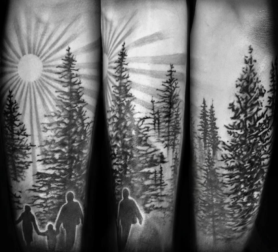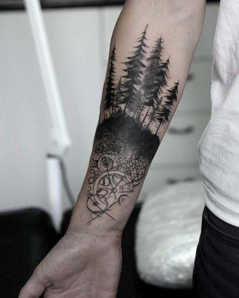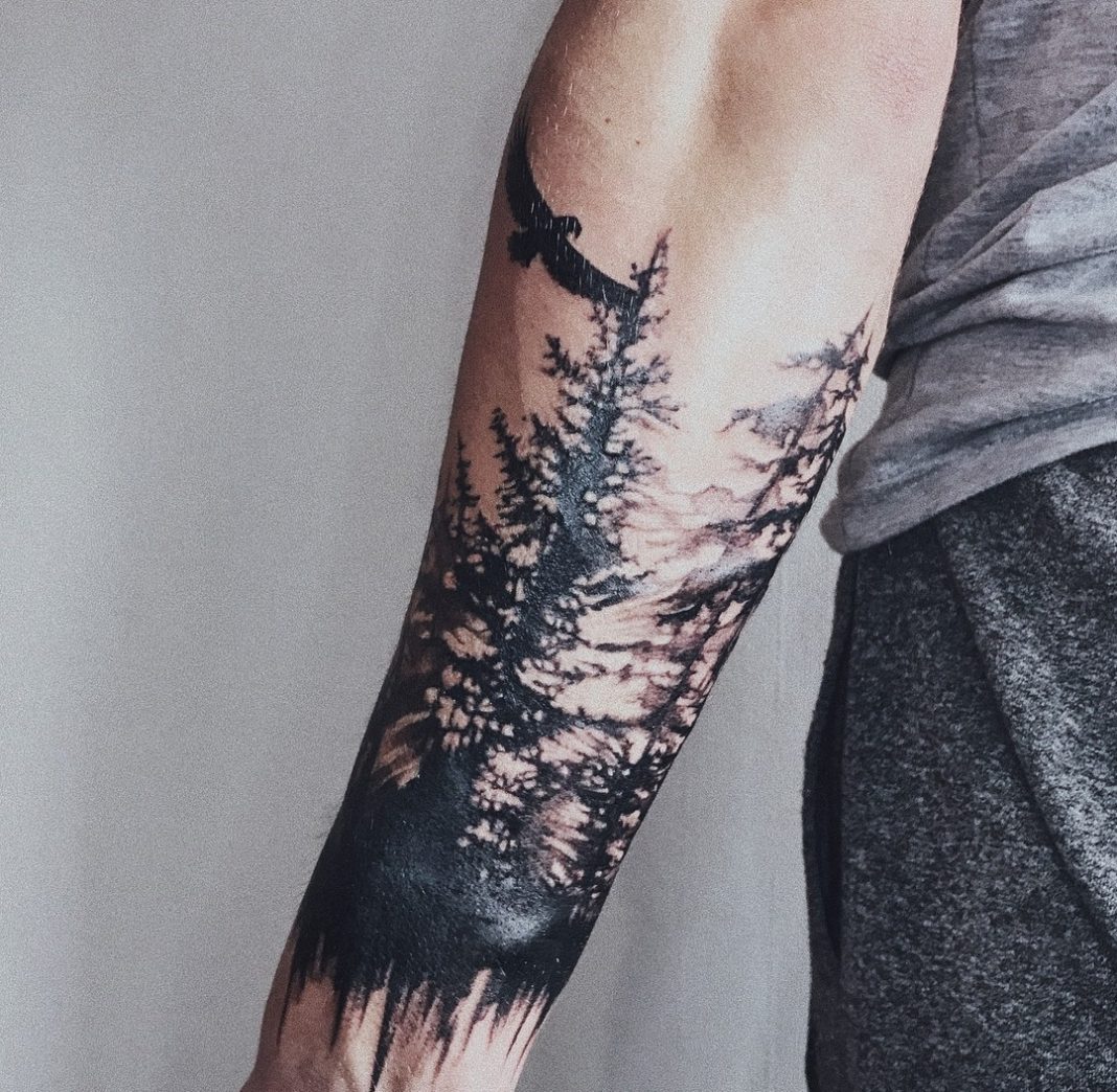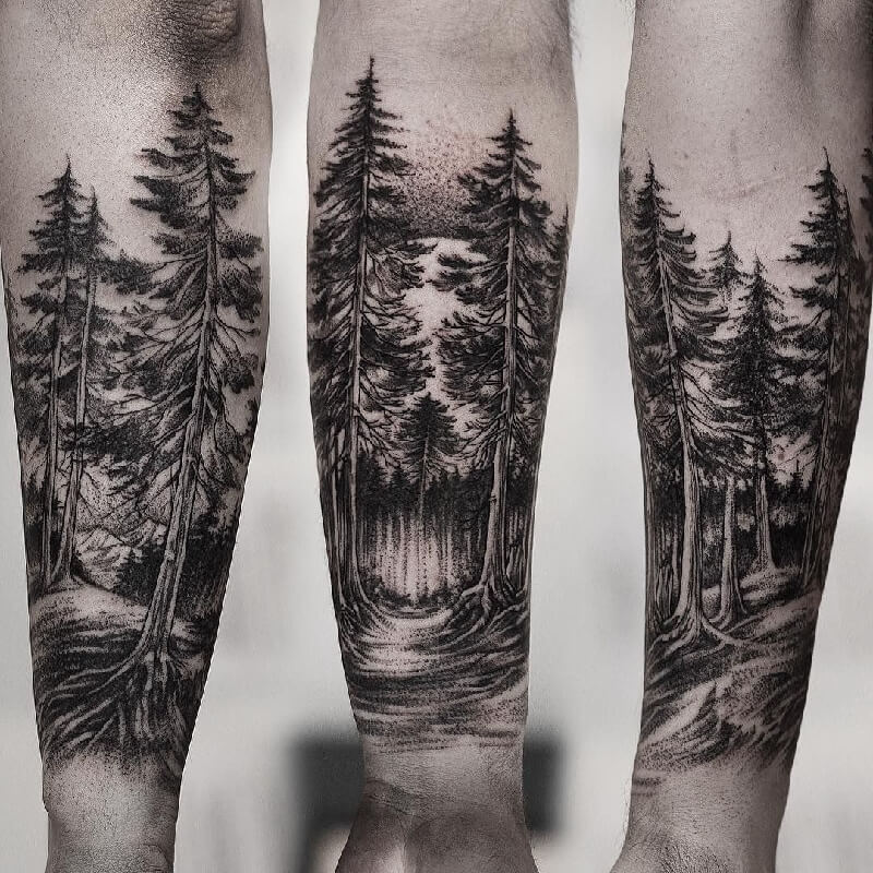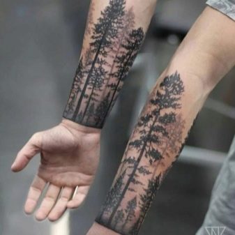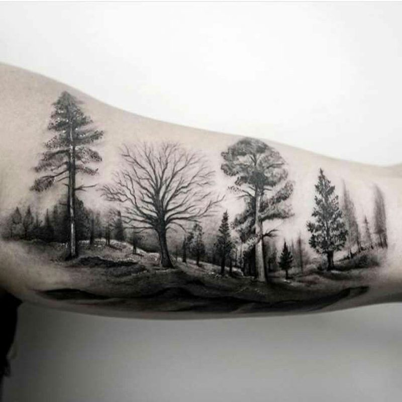 كان لتصوير الأشجار معنى مقدس في العديد من الثقافات. في هذا الصدد ، لا يزال الوشم الرجالي على شكل غابة من أكثر الأوشام شعبية. يتم وضع معاني مختلفة في صور من هذا النوع. لكل شخص الحرية في تفسير وشمه بطريقته الخاصة ، خاصة وأن معظمهم يتداخلون مع بعضهم البعض.