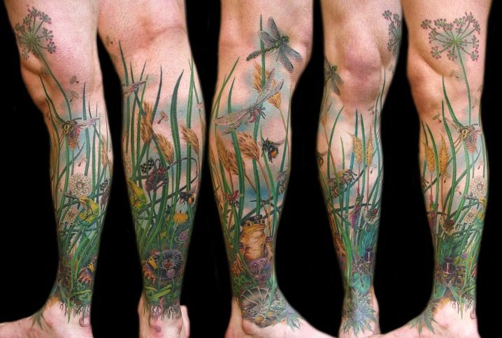 - سيرا على الاقدام. يجب اختيار هذه المنطقة من قبل أولئك الذين لا يريدون إظهار الوشم بشكل دائم. يمكن دائمًا إغلاق أرجل الرجال من أعين المتطفلين. وعليه ، يكفي ارتداء البنطال لإخفاء الوشم.