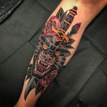 - يعتبر الساعد أيضًا خيارًا يتم اختياره بشكل متكرر. مثل هذا الرسم ، كقاعدة عامة ، مرئي للآخرين ، ويشير إلى أن صاحب هذا النمر هو شخص حاسم ومن الأفضل عدم التعارض معه.